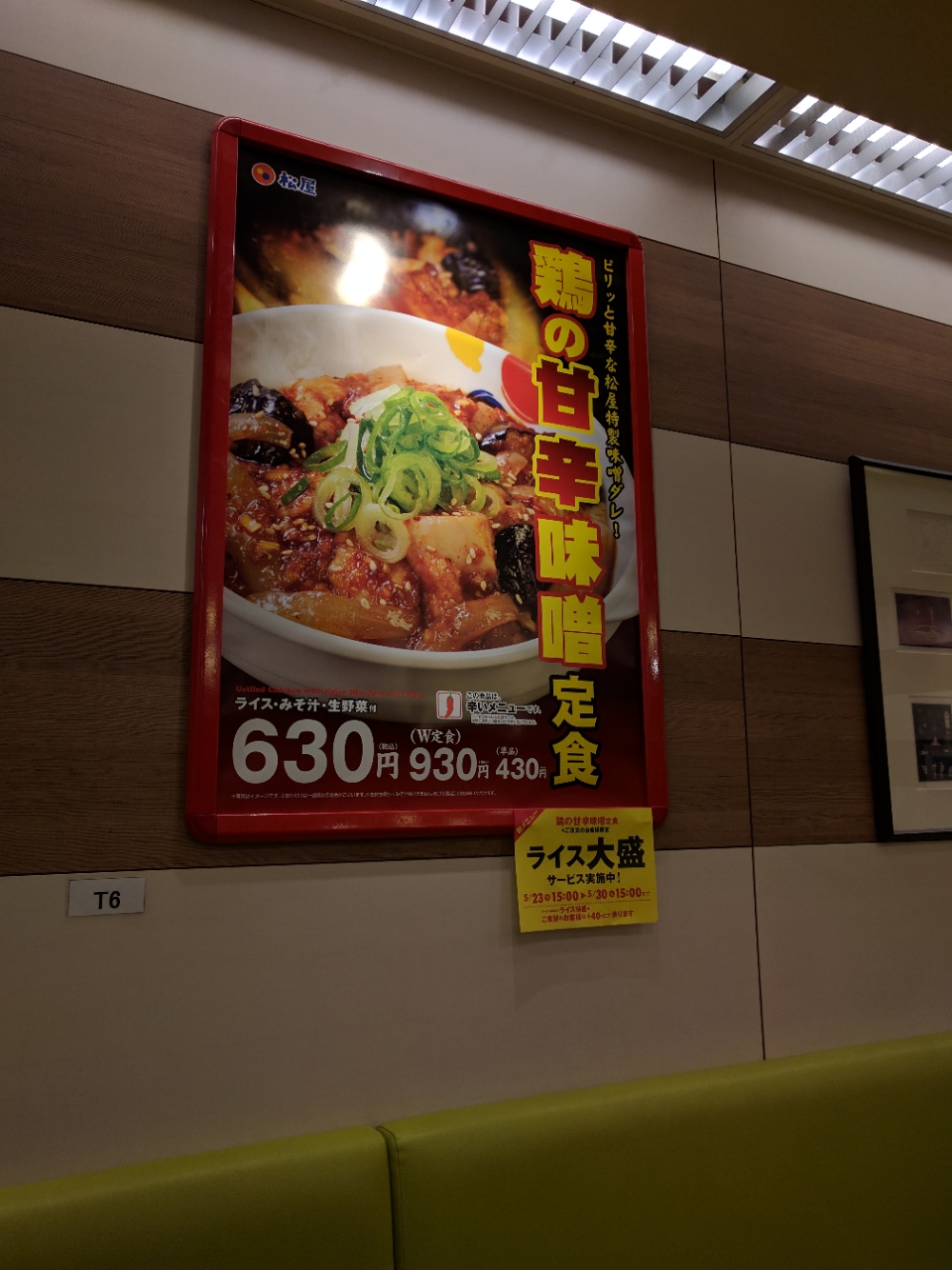 練習後は松屋へ。調子にのって鶏の甘辛味噌W定食特盛 930円を頼んだら多すぎた。