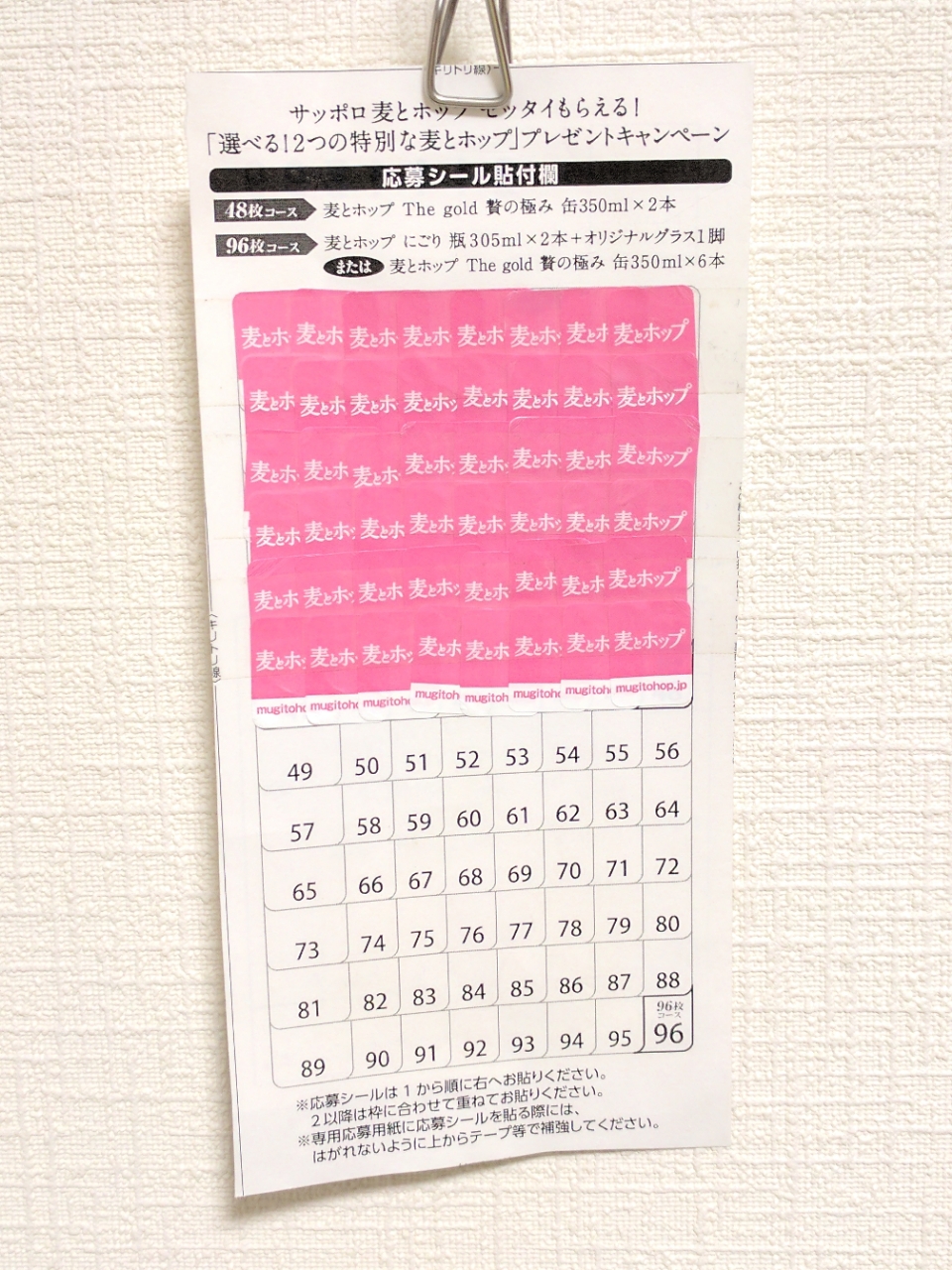 ぼちぼち記憶力がヤバイかんじになってきたので脳細胞を温存すべく最近は飲む量を減らしているのでなかなかシールが集まらず。どうせなら96枚あつめてグラスがほしいところだが、とても無理だ。