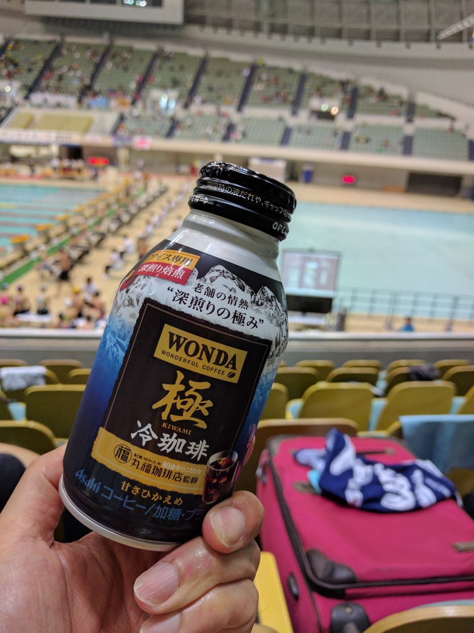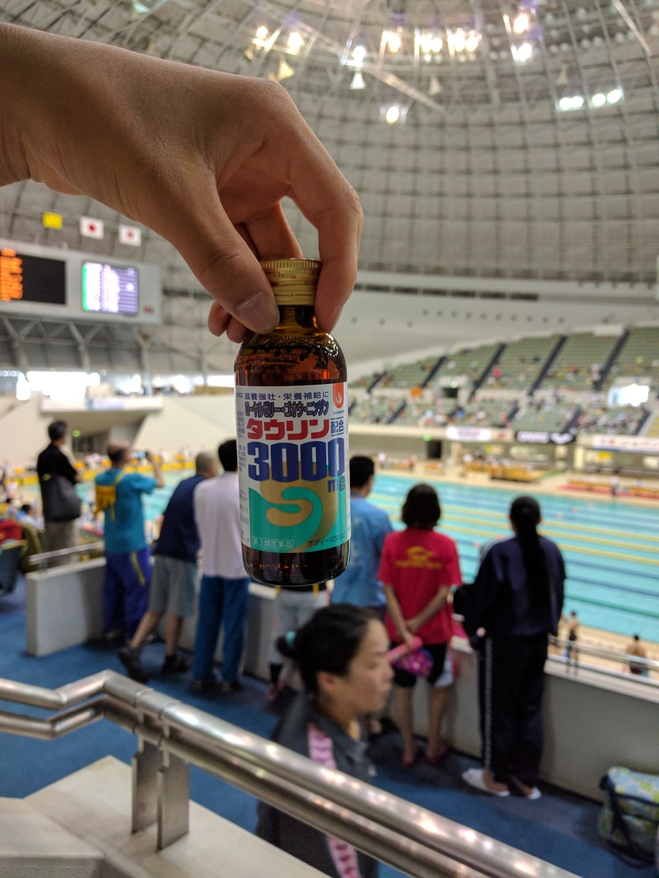 チームの人とはなかなか合流できず、観覧席に荷物を置いてアッププールへ。事前ツイッター情報では水があたたかすぎるとのことだったが、普段のプールもこのくらいなので問題なかった。