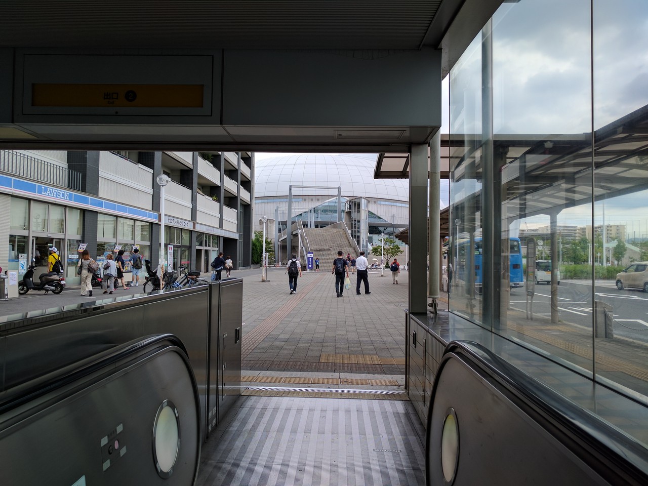 大阪市営地下鉄長堀鶴見緑地線に乗って終点の門真南駅で下車。どの出口から出たら近いのかメモり忘れたので駅の案内板をみて、なんとなく近そうな4番に向かったらエスカレータないしプールの2階入口からは遠いし大失敗だった。