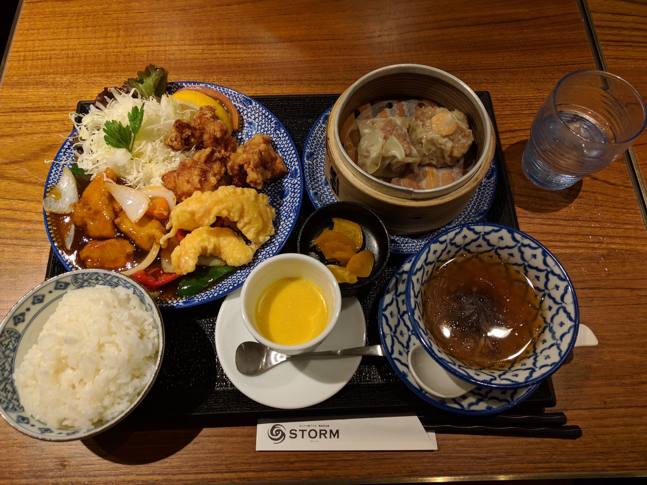 京阪百貨店の5階のレストランフロアにやっとのことで辿りついたが、なんとなくお高い感じだったので、京阪モール1階のSTORMというお店で(夜なのに)ストームランチを食べた。1250円。