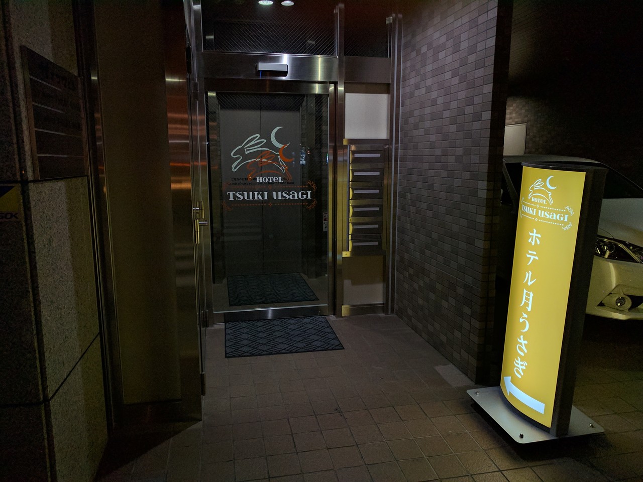 その後(チェックインは18時と伝えてあったのに)21時ちょいすぎにホテル「月うさぎ」着。建物に入るのに事前に連絡があった暗証番号を入力して4階フロントへ。