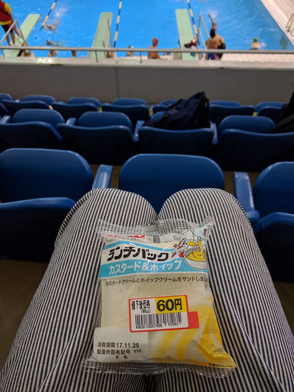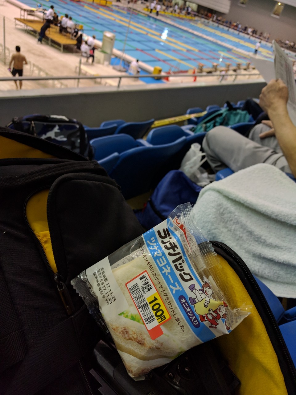 水を飲んで後半は力が出せなかったので泳ぎ終わったあと全然つかれてない。まだ25mダッシュできそうな感じ。ここまで不満足なレースははじめただ。で、イライラしながら退場したのでメガネをか籠に置き忘れてきてしまい取りに戻る失態。