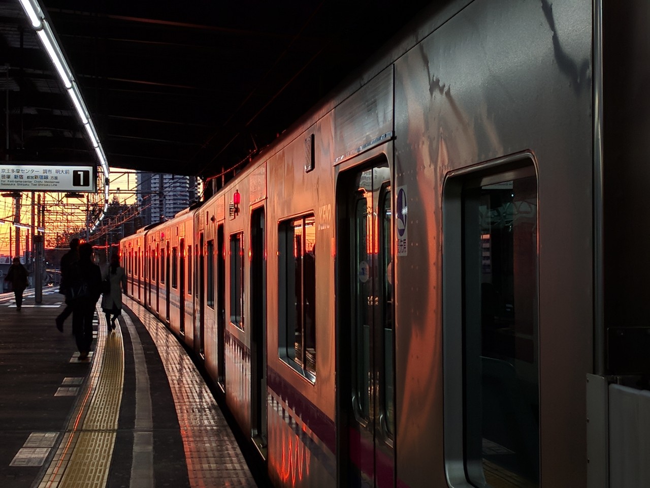 朝起きるのが遅くなったり準備に手間どったりで予定より1本あとの電車に乗った。朝焼けきれい。ちょっとでも早く着こうと京王相模原線の区間急行に乗ったが橋本→調布は各駅停車なので全然眠れず、しかも調布で特急にのりかえなので、京葉線でちょっと眠れただけ。