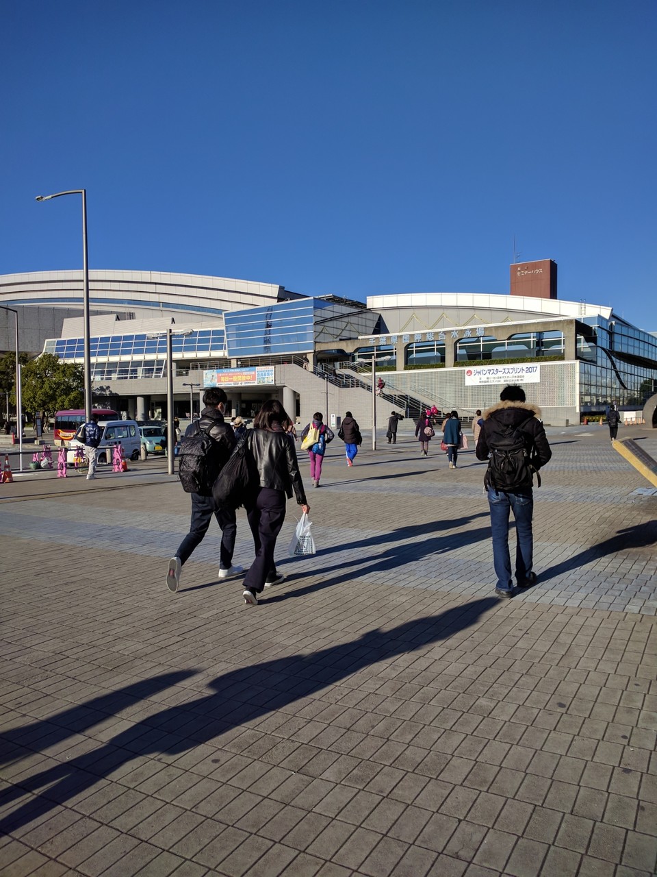 あとはチームメンバーの映像撮る。三脚とビデオ雲台をもってきたが通路が狭くて三脚の脚を拡げられず、時間がなくて水平も出せずで、三脚不要だった。観客席が空いてればいいんだけど、よほど早く来ないと場所は取れなさそうだ。