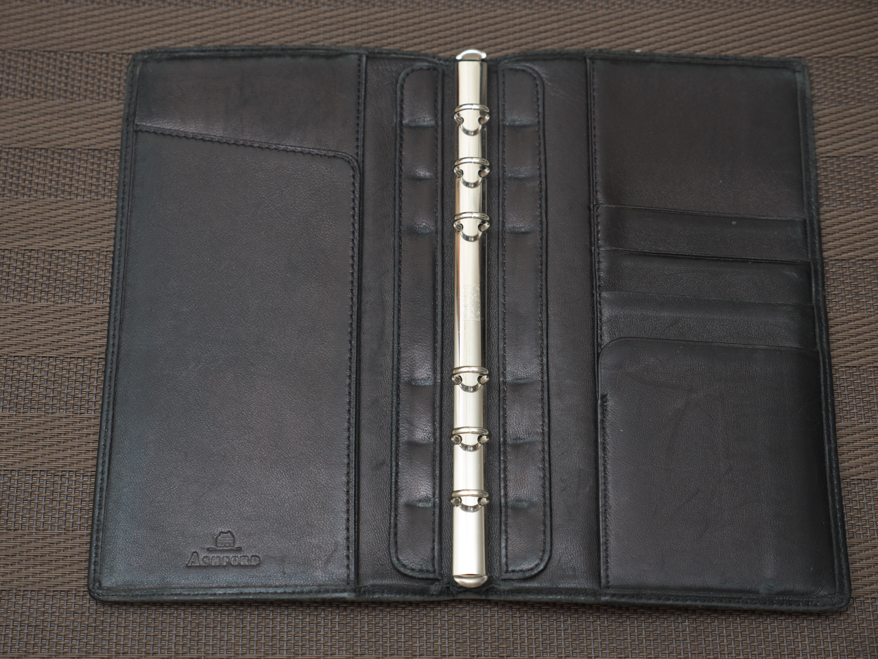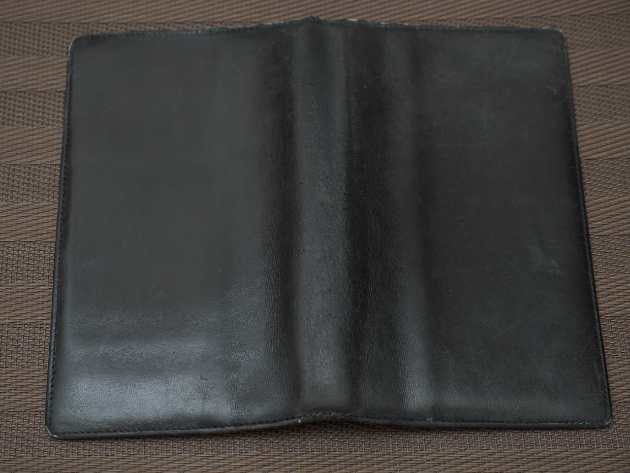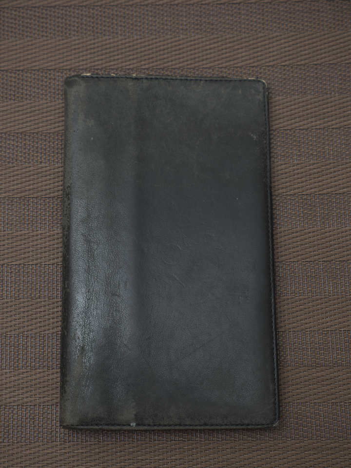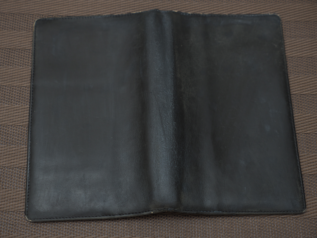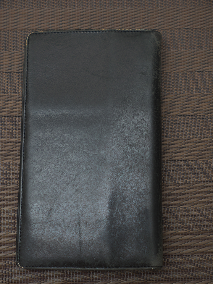 ついでに、20年くらいつかっているシステム手帳の革(羊?)がボロボロになってるので表紙・背・裏表紙だけコロニル ウォーターストップカラーズを塗ってみた。表紙の裏側は普段ふれないのでまったく痛んでいない。