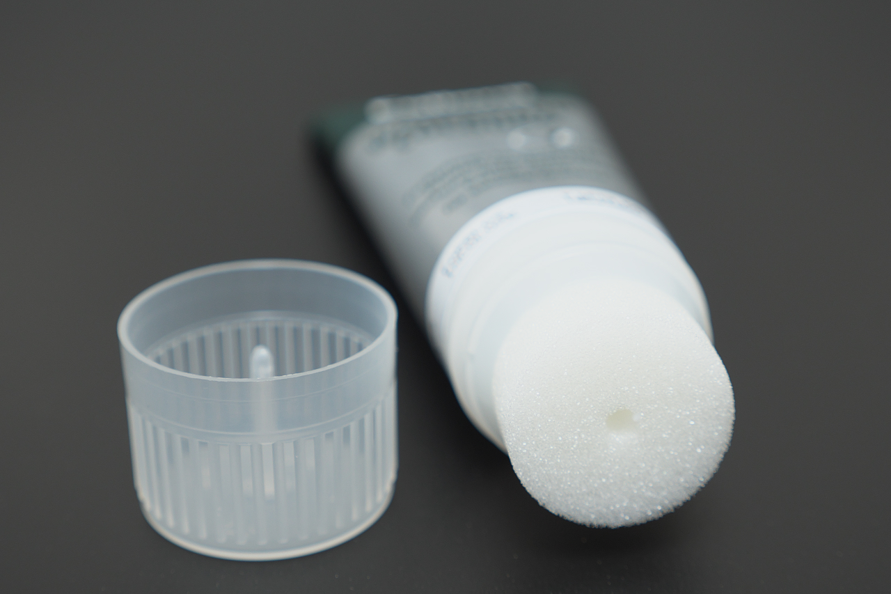 スポンジ部分ははずして直接クリームをちょっと多めに塗ってみたらボール紙はとれたがベタベタまでは解決せず。匂いはそんなにキツくない。