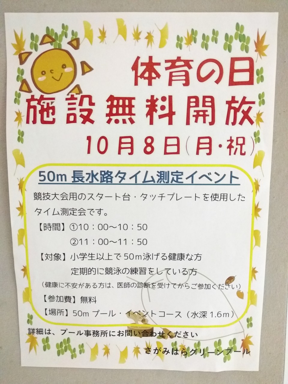 10月8日の体育の日は無料開放