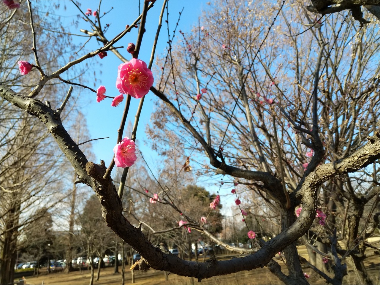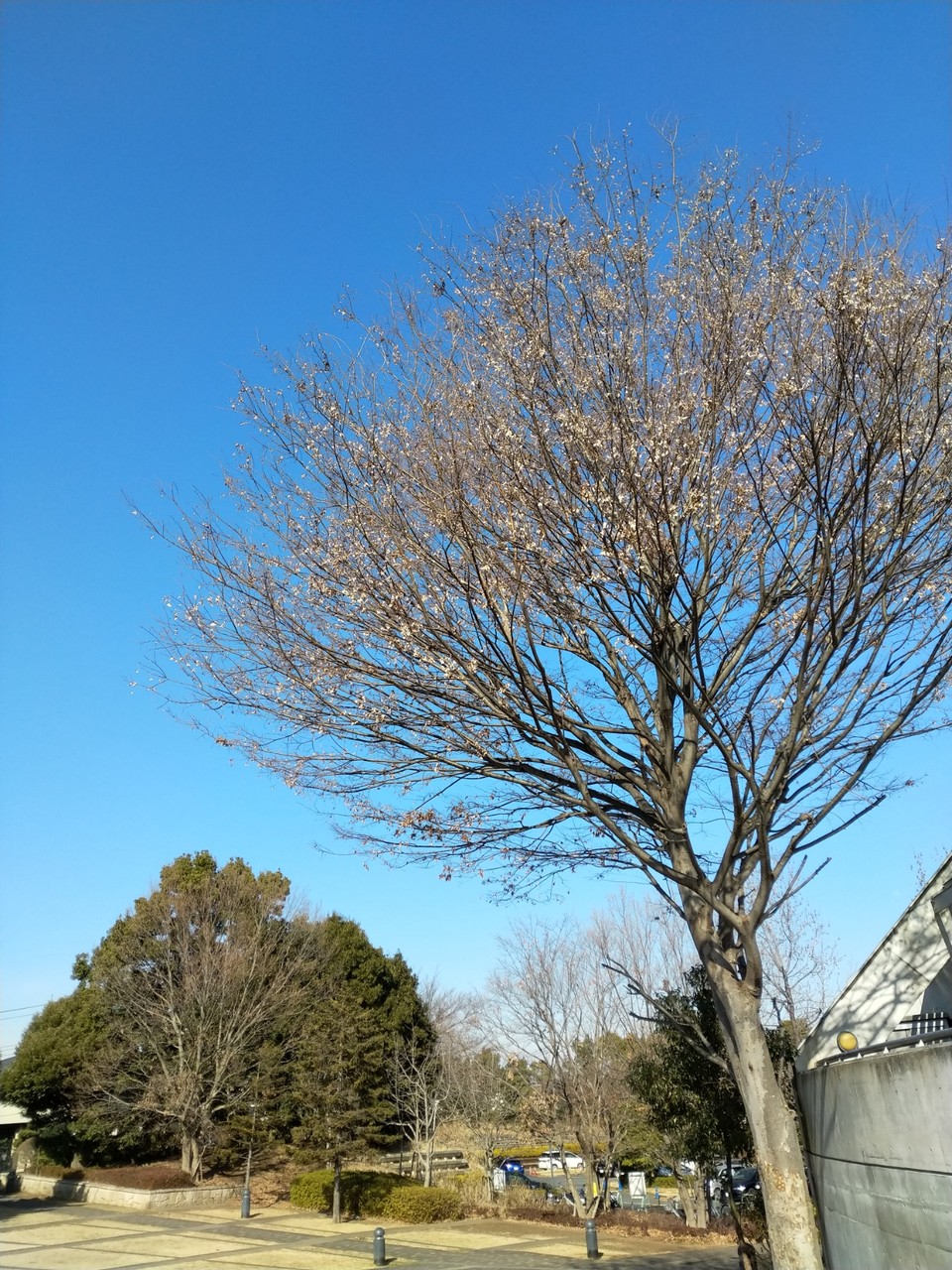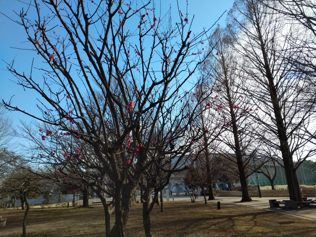 横山公園でもう梅が咲いてた。1本だけだけど。