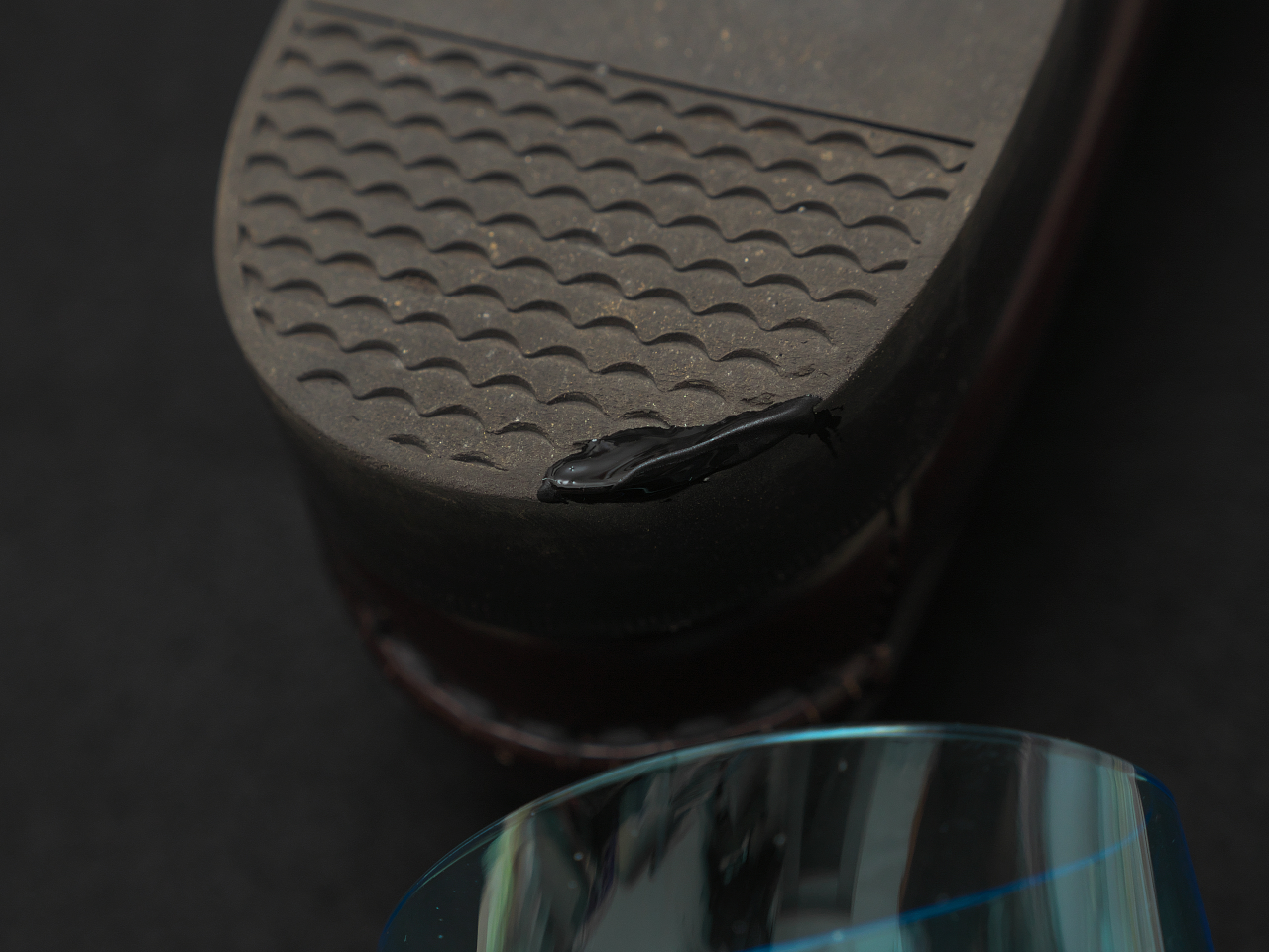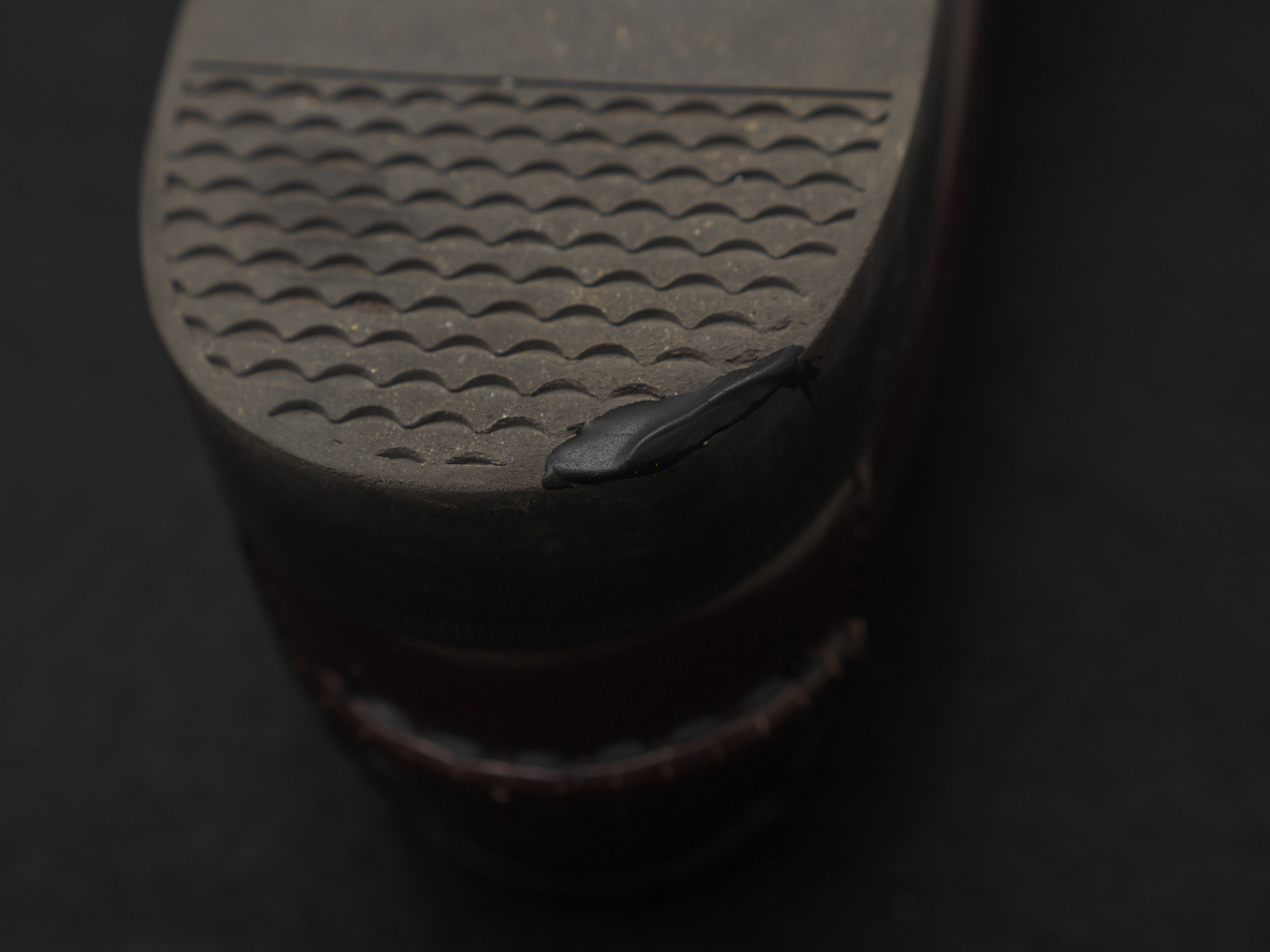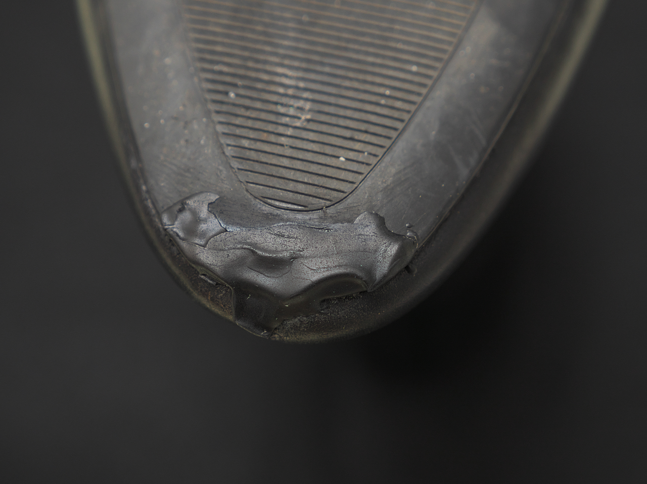 つぎにソールが薄い靴のつま先の補修というか予防的に補修材を盛ってみる。