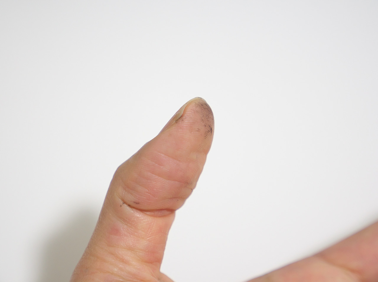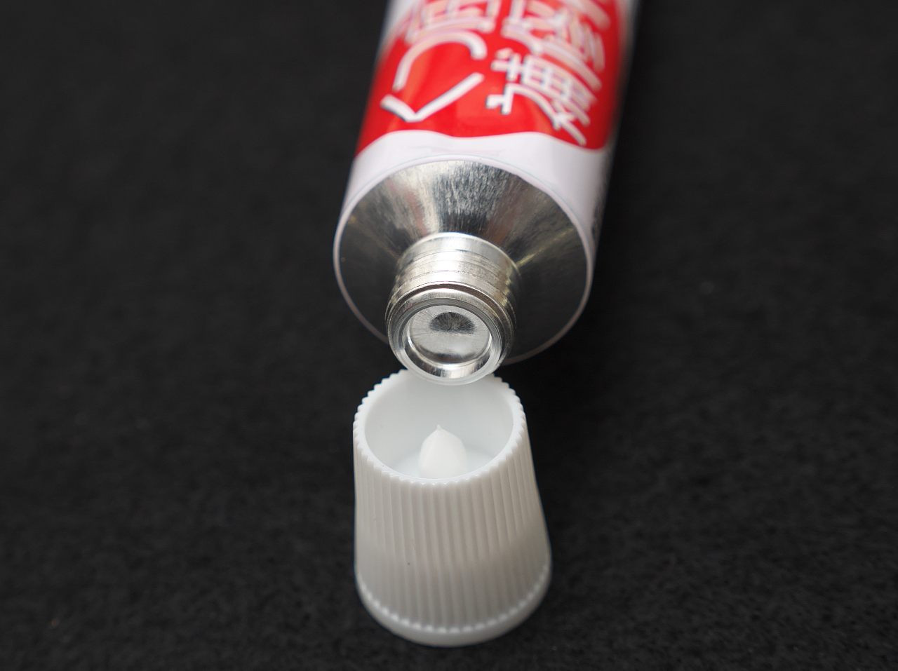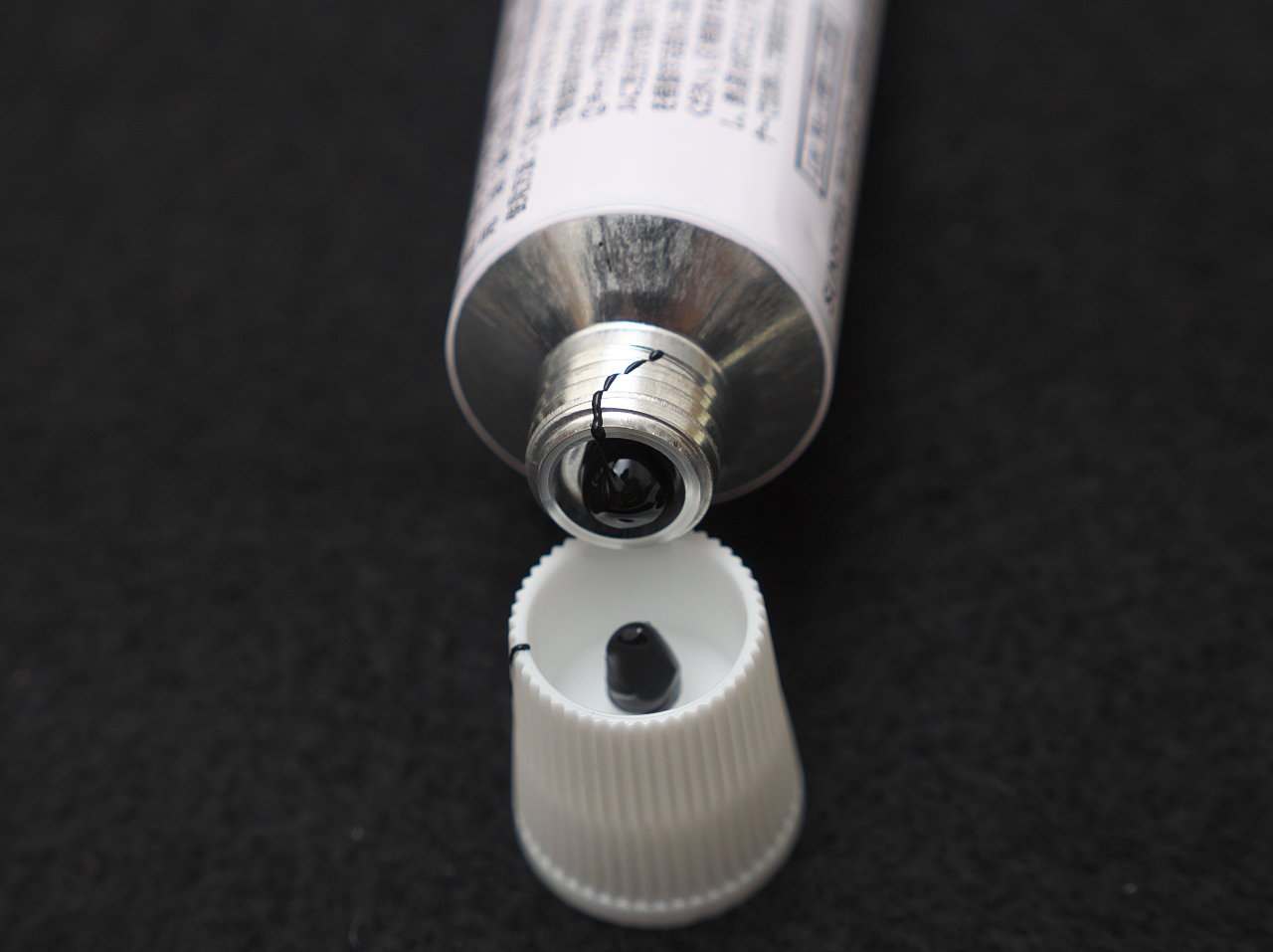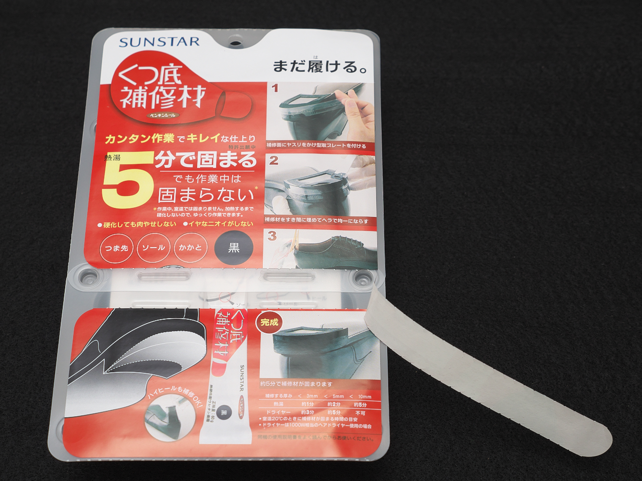 この時点ですでに手に補修材がついて指が黒くなった。ティッシュで拭いても指紋の間に入り込んで取れない。この指でドライヤーをさわるとドライヤーが黒くなったが加熱するまでは固まらないのでティッシュでごしごし拭きとったらok。