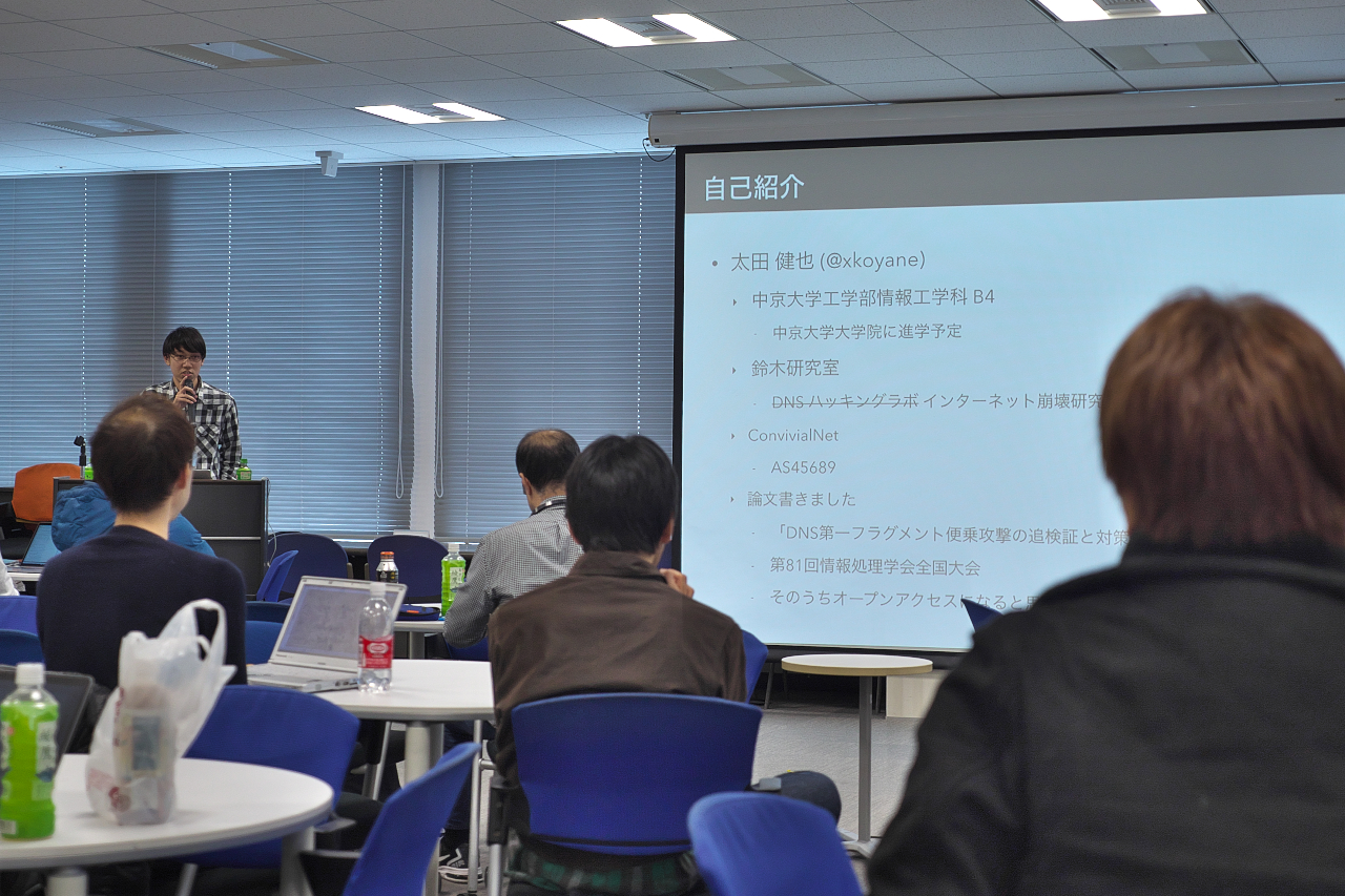- 研究室に名前をつけろということで、じょうだんで「インターネット崩壊研究室」で出したら通ってしまった、とのこと。