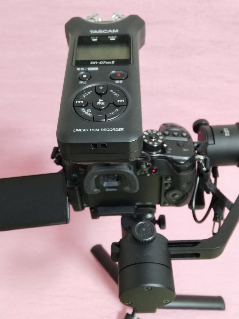 MOZA AirCrossにPanasonic DMC-GH4を載せて撮影するのは慣れてきた。GH4の内蔵マイクはそんなに悪くないけどでも外付けのPCMレコーダで音をとりたい。