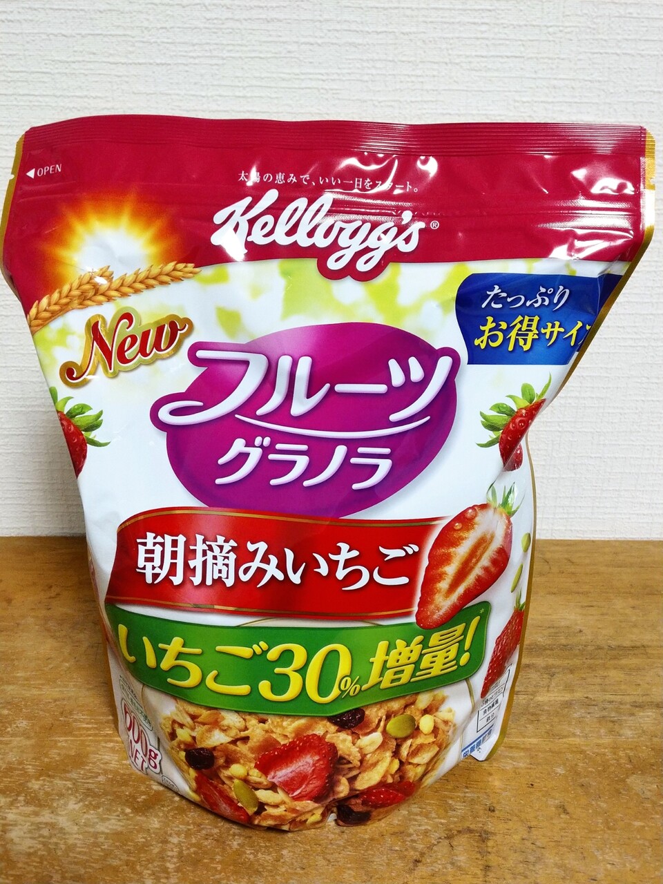 カルビーのグラノラに飽きてきたのでケロッグのフルーツグラノーラ朝摘みいちごを買ってみた。