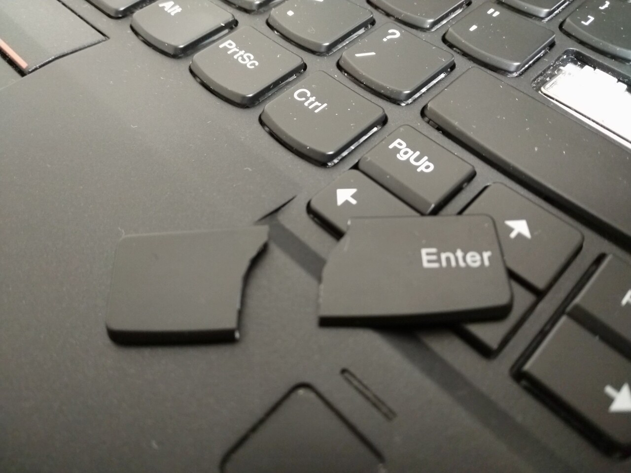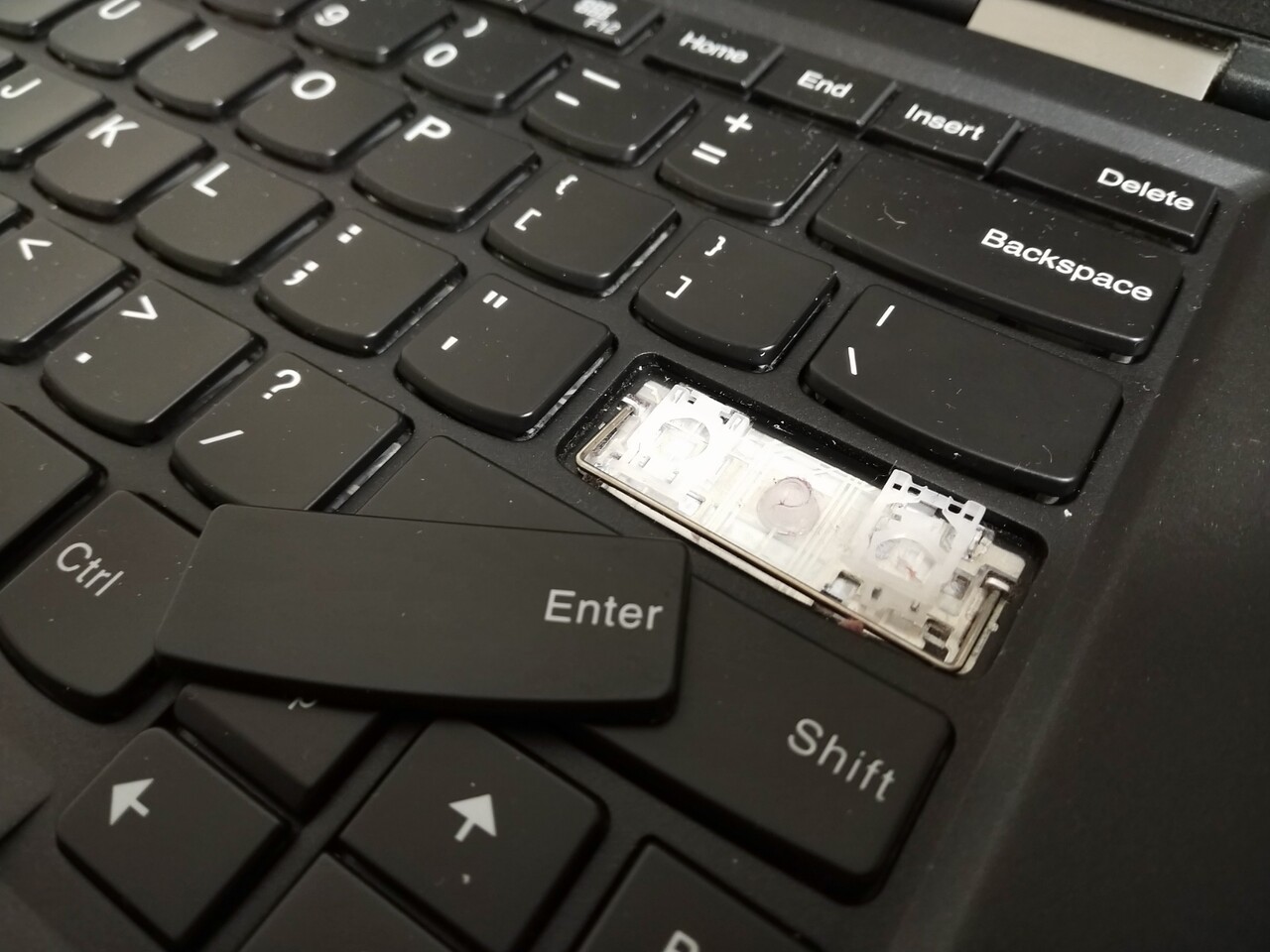 ThinkPadのキーボードにワインをこぼしてしまった。右側が被災して Backspace, \, Enter, 右Shift, カーソル, PgUp, PgDn がワインに浸った感じ。R, Fあたりにもちょっと飛んだ。