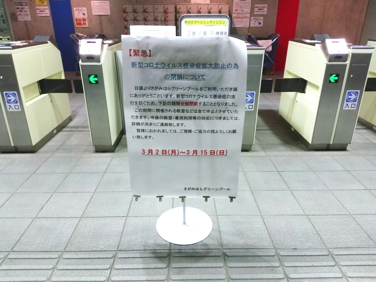 夕方のグリーンプールへ。相模原のほとんどの施設は新型コロナウイルス対策であしたから2週間のあいだ閉鎖。しばらくプールで泳げない。春の桜まつりも中止になったようだ。