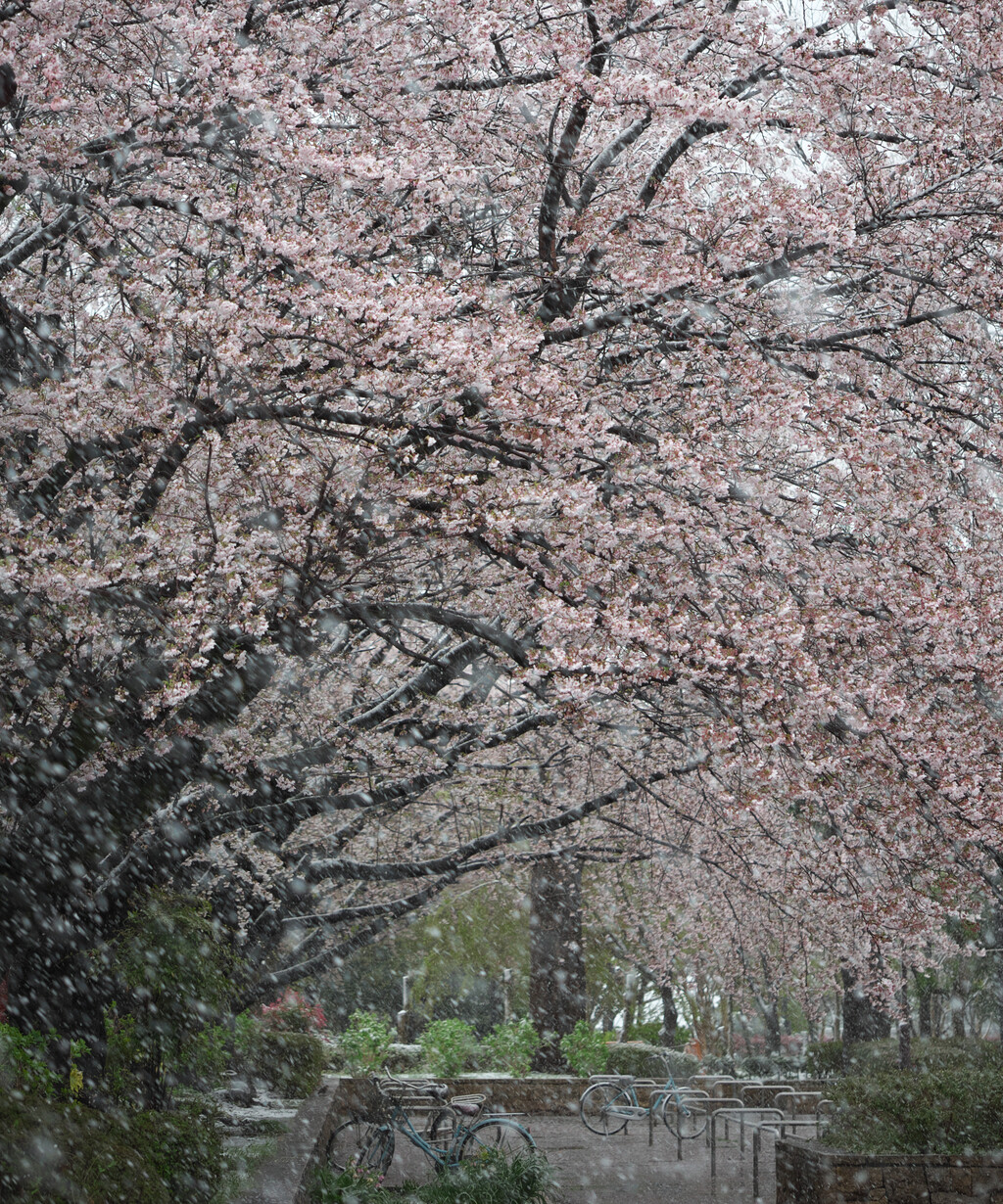 3/28に近くの横山公園に花見に。COVID19で外出自粛要請がでているので人は少ない。