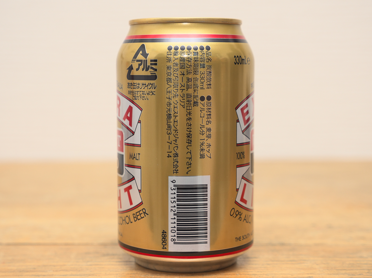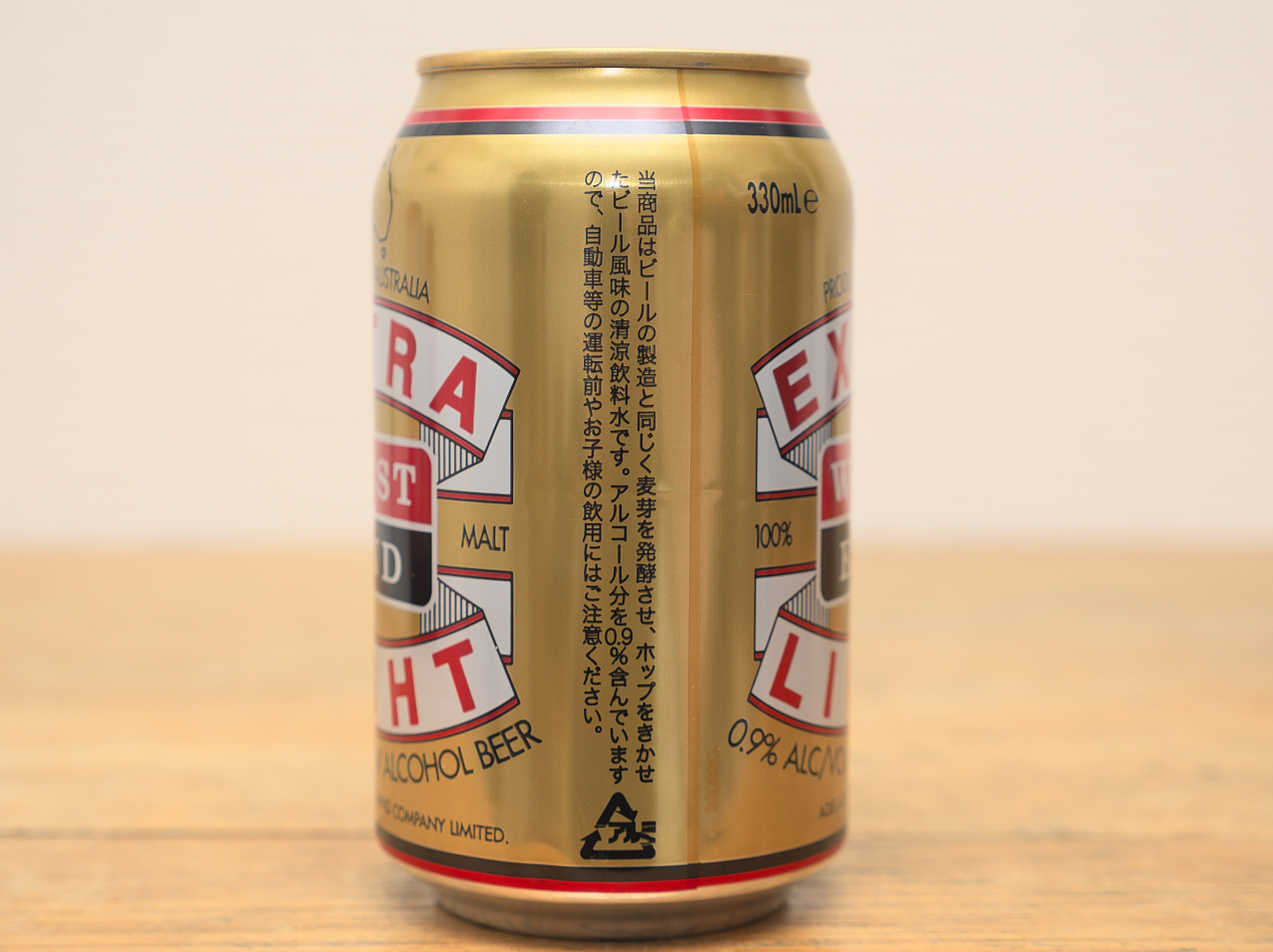 これ↓の右側がウエストエンド エクストラライト。ヴェリタスブロイに比べると味・香りが濃い。これならイオンの第3のビール(青)よりいいかも。アルコールは0.9%入っていて完全なノンアルコールではない。