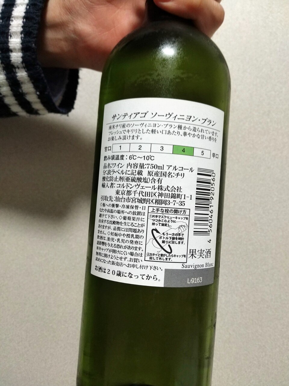 サンティアゴ ソーヴィニヨン・ブラン、ダイエーで480円-15円-5円で購入。