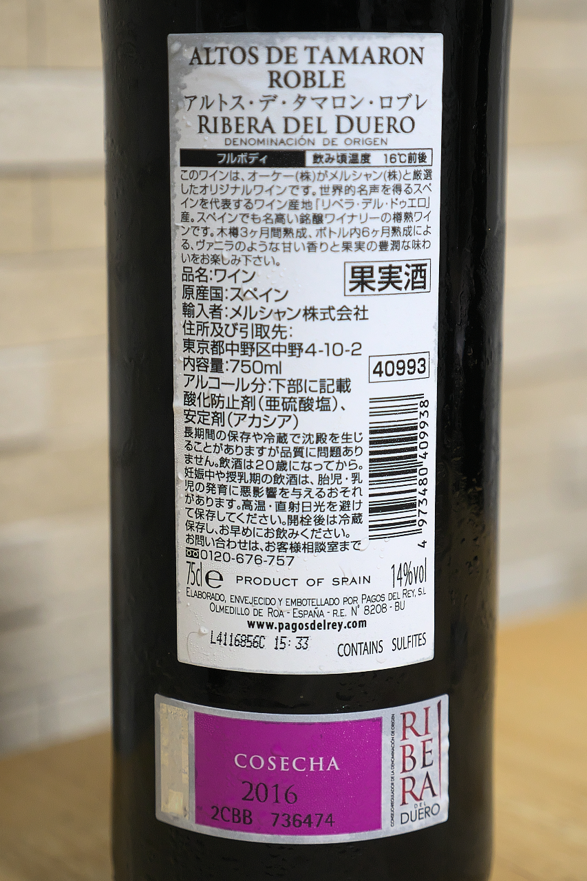 600円台のワインにも関わらずソムリエナイフが必要なワイン。開けるところから楽しむことができる。栓を抜きグラスに注ぐと ほのかに甘い香りがした。味はタンニンをしっかりと感じるが、かといって"渋い!"という感想を抱くことなくとてもバランスのとれているワイン。600円台のワインとしては素晴らしい香りと味を楽しむことができ、コスパ最強。3,400円のワインじゃ香りもしないし味もあんまりだなというときの週末のワインにぴったり。