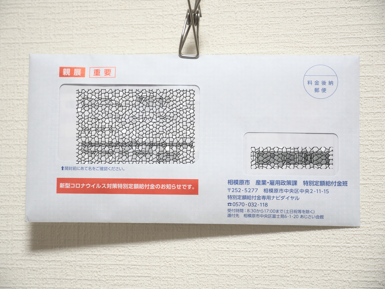 運転免許証と銀行の通帳のコピーがあれば ok なのね。簡単だでいいけど、役所の人は手入力するんだろうな。でも、世の中にはハイブリッド方式というのを考えた人がいるらしい。郵送で照会番号(=アクセスキー)を送りつけて、市民はスマホから照会番号・口座番号・身分証明書の写真を送ったらおしまいという仕掛けのようだ。かしこいなぁ。