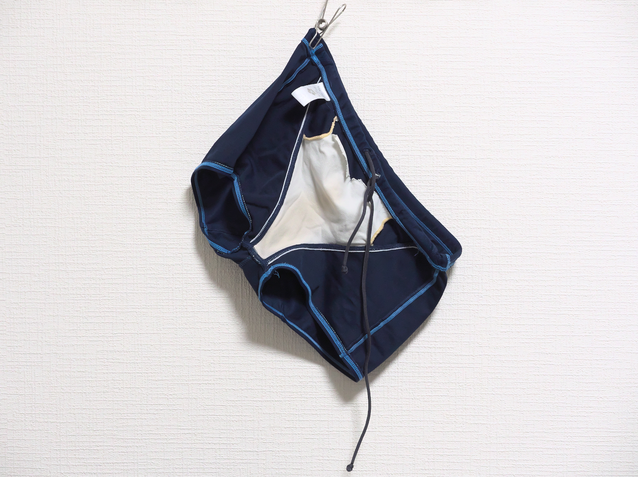 水着本体の生地はまだ弾力が残っているが裏地がもう寿命。はき始めたのが2017-08-22なので3年半ちかくも使えた。