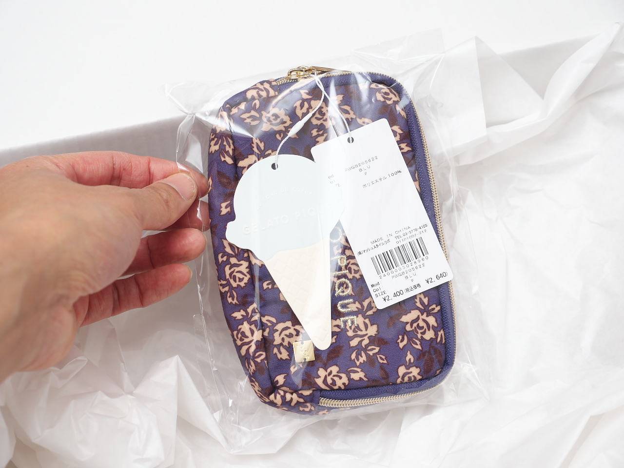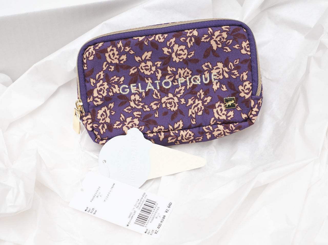 ダマスクとうたっているがダマスク織でもダマスク柄でもない花柄プリント。縫製はちゃんとしてそう。ファスナーの動きも問題ない。1848円。