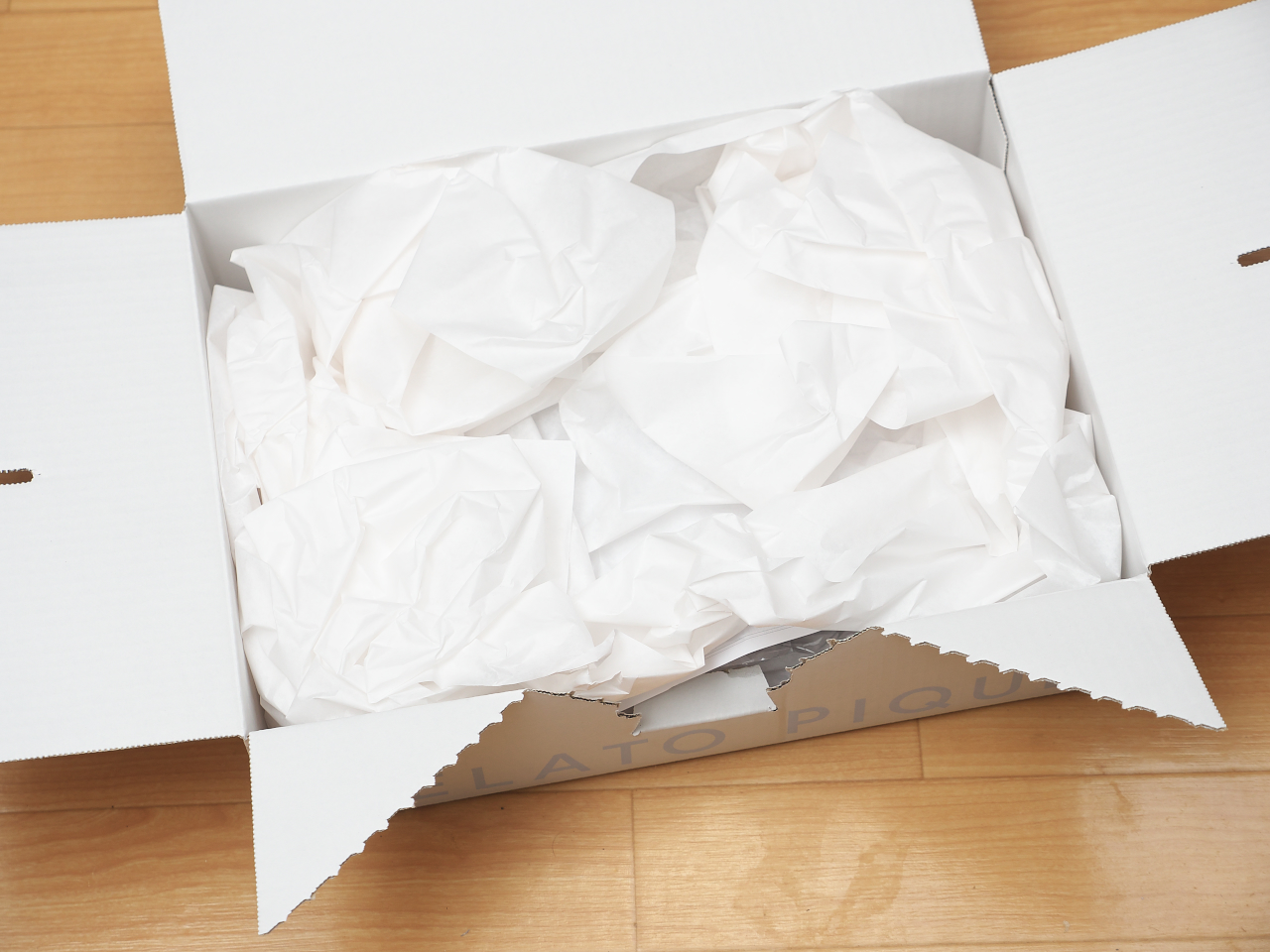 凝った段ボール箱で届いた。白基調で爽やかな感じ。