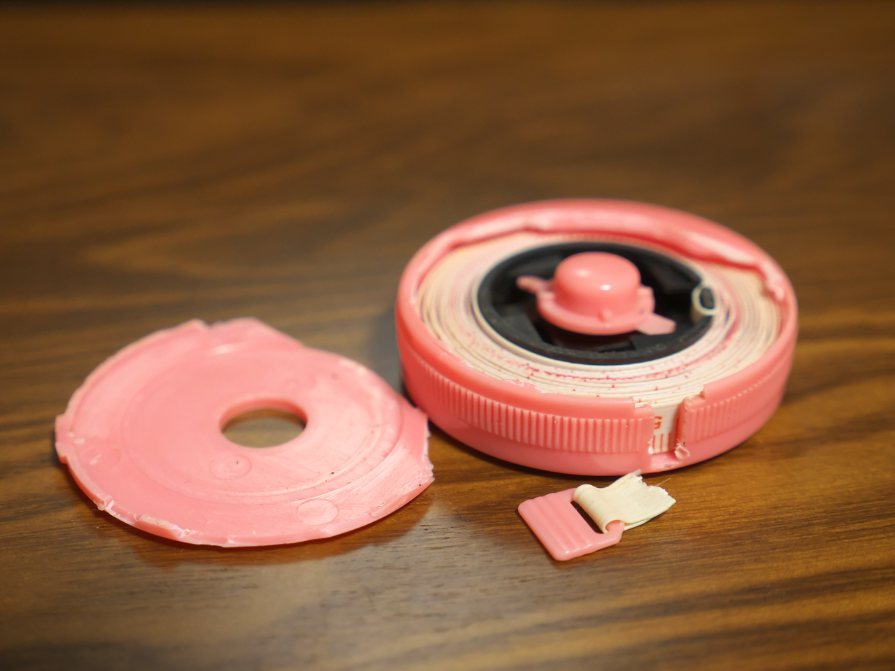 もう何年つかったかわからない百均で買った巻き尺がちぎれてしまった。ものさしが短いのしかないので長さを測るときによくつかった。精度があやしいけど。1mmくらいはずれてそう。