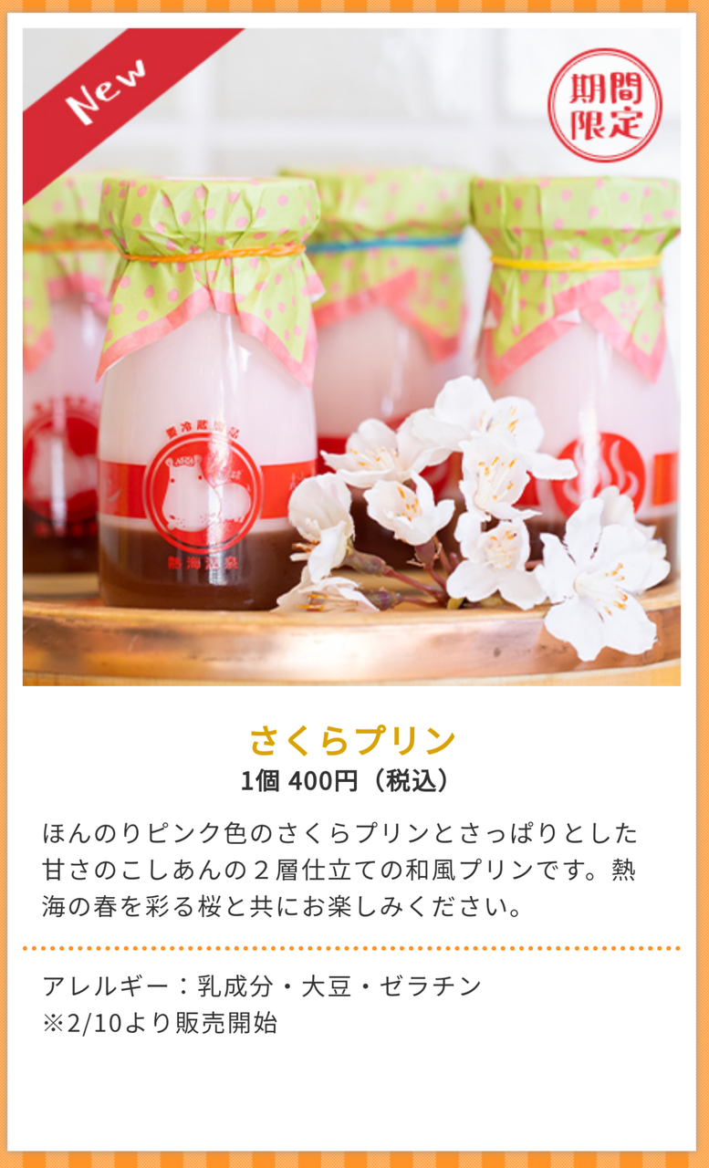 おみやげで熱海プリンをもらった。期間限定のさくら味。