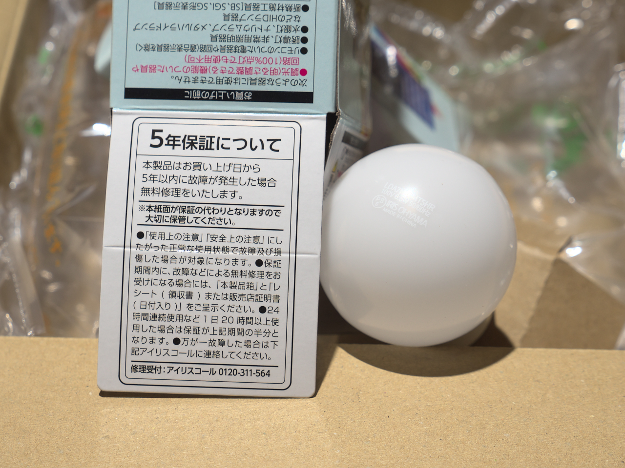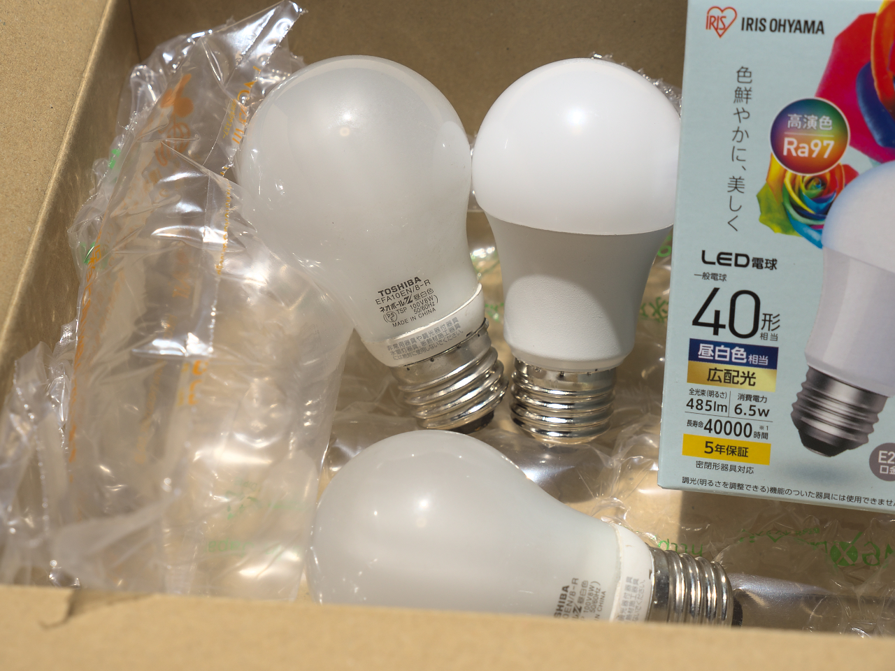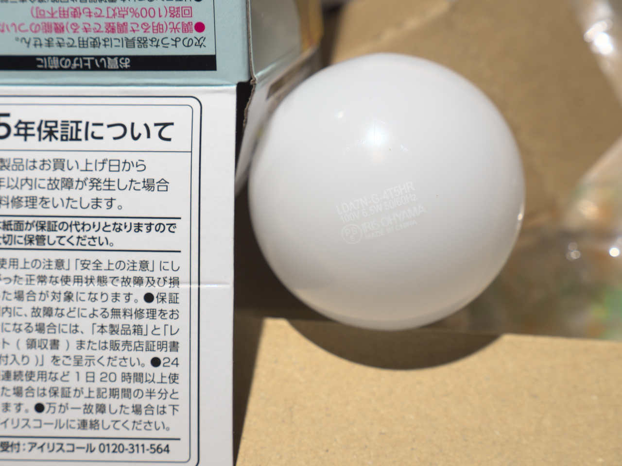 まだ電球型蛍光灯を使っているところが残っていて、だんだん点灯直後の暗さが気になるようになってきたので、目に付いたRa高くて安めなアイリスオーヤマ電球型LED 昼白色LDA7NG4T5HRをノジマでぽちっとな。@1078円。あとから気づいたが、アイリスオーヤマの公式で買えば4個で3278円なので@819円とノジマの8掛けで買えたのに... ノジマはキャンセルが簡単にできないのであきらめた。