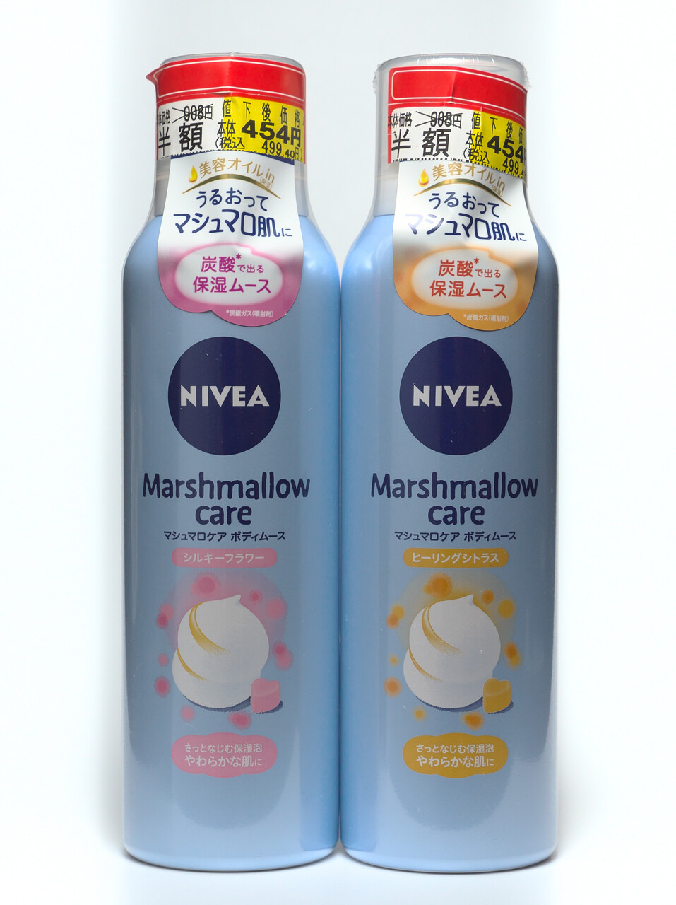 ダイエーで安売りしてたニベア マシュマロケア ボディムースをかってみた。どうやら廃盤になって安売りしているようだ。