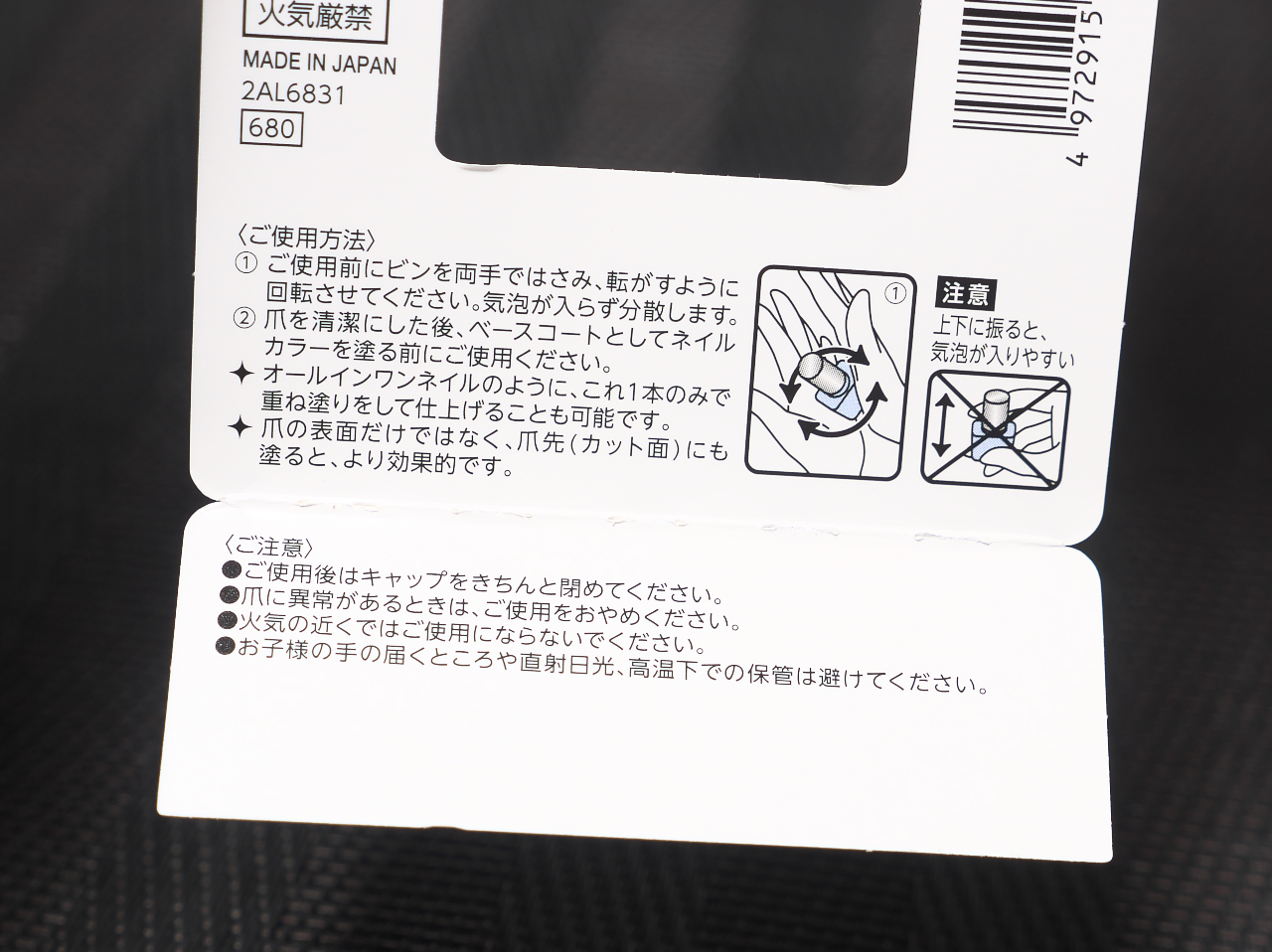 すぐ乾いた。反対側の手を塗り終わったら、最初に塗った方はもう乾いていた。
