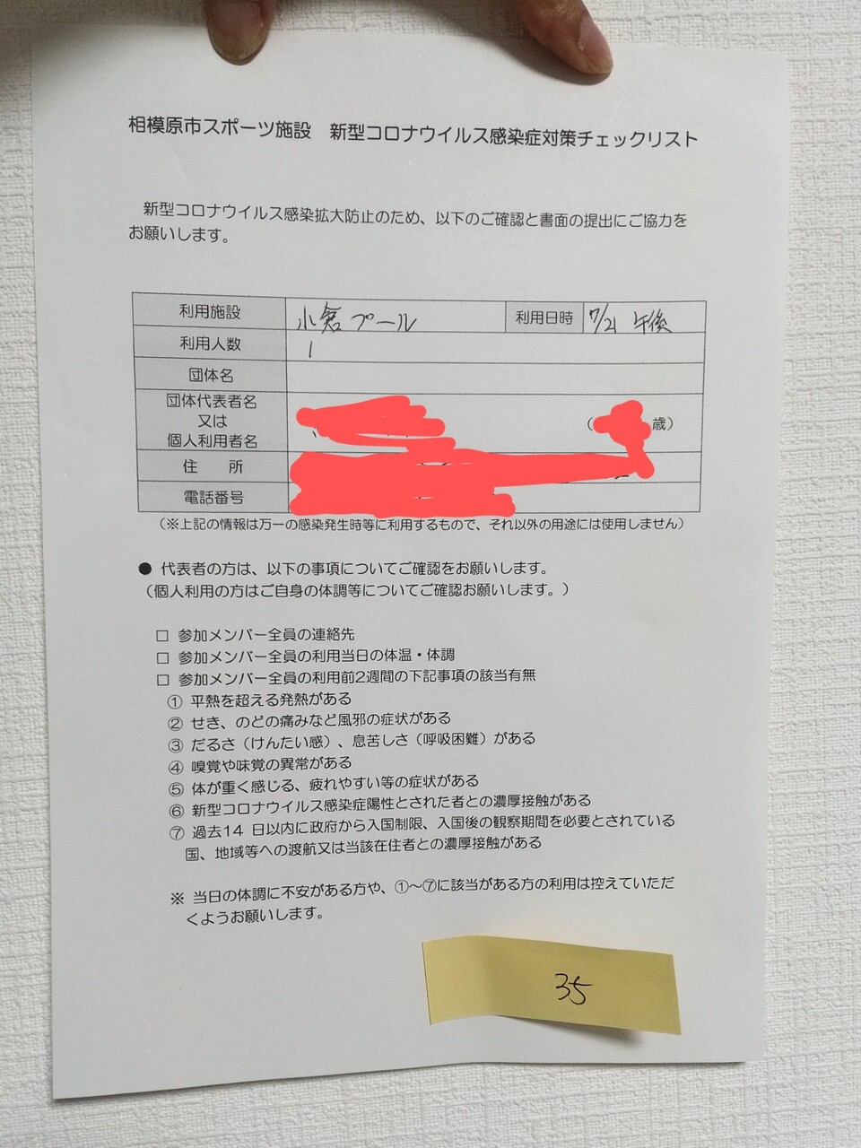 休みをとって午後からこだまプールへ。当日の午前中に電話で予約をいれた。あした・あさってはオリンピック休日で予約は満員になっているが、きょうは平日なのでスカスカ。予約番号は35。うけつけのときにちらっと予約表をみたら40番まではなかったようにみえた。定員300人ということなので40組×4人/組 = 160人くらいだったかも。ぱっと混雑はしてなかった。