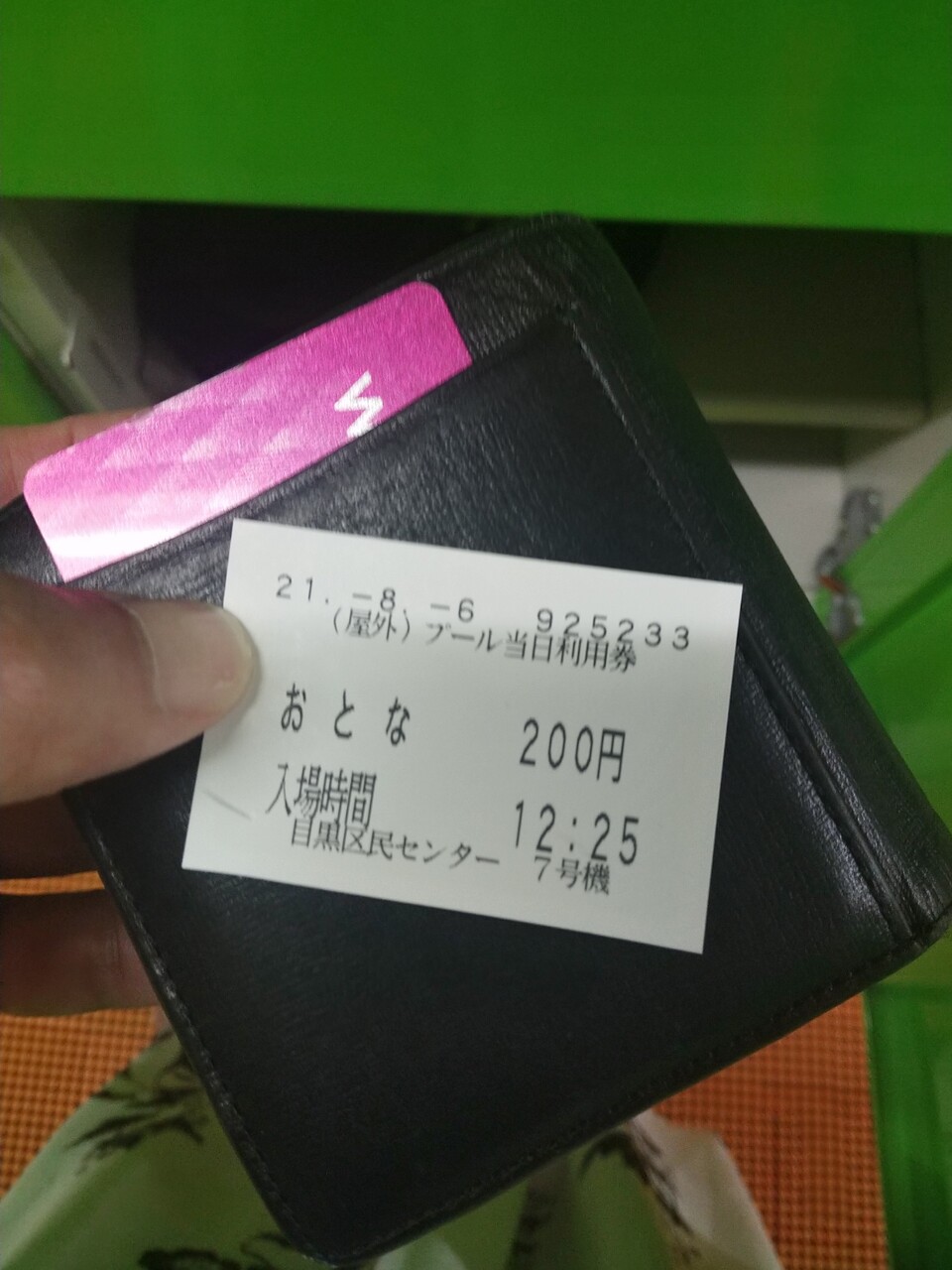 受付番号・人数・名前・電話番号・チェックシートを記入して中に入って入場券200円を買ってプールへgo!
