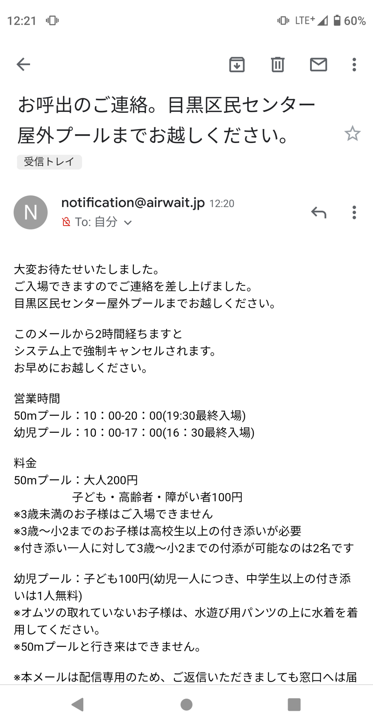 なんとなく会場してすぐ25番も待ちが解消するとは思えないが、1時間くらいしたらキャンセルがでてはいれるかなぁと淡い期待をしていたが、結果的には12時20分に順番来たとメールが届いたのでキャンセルはでなかったようだ。