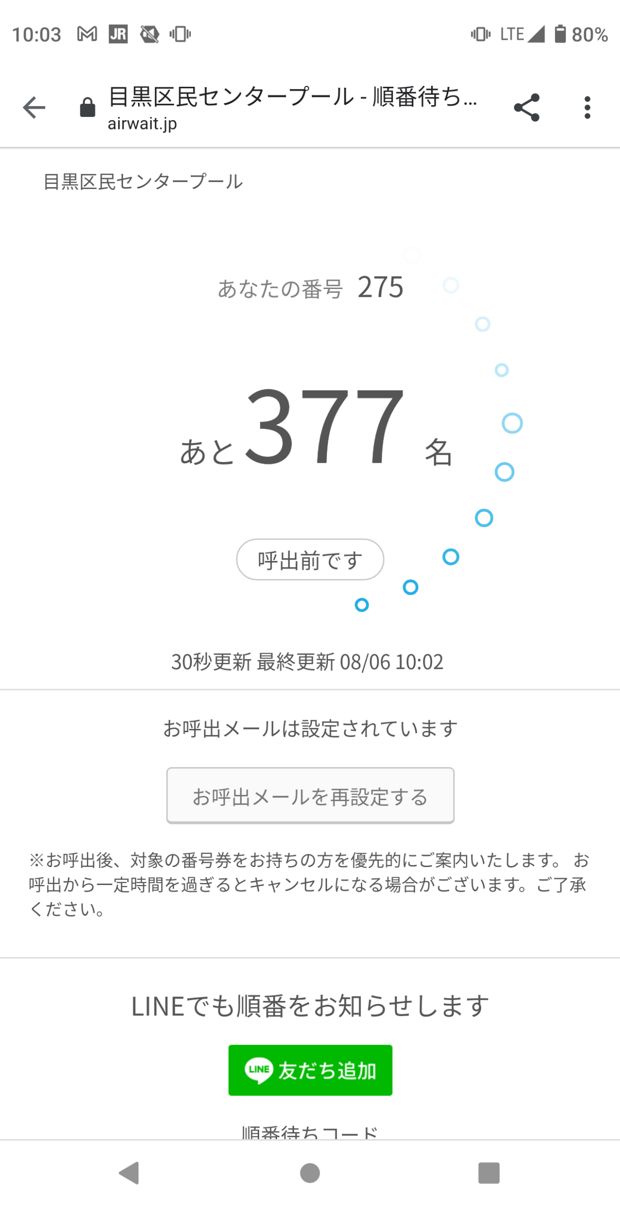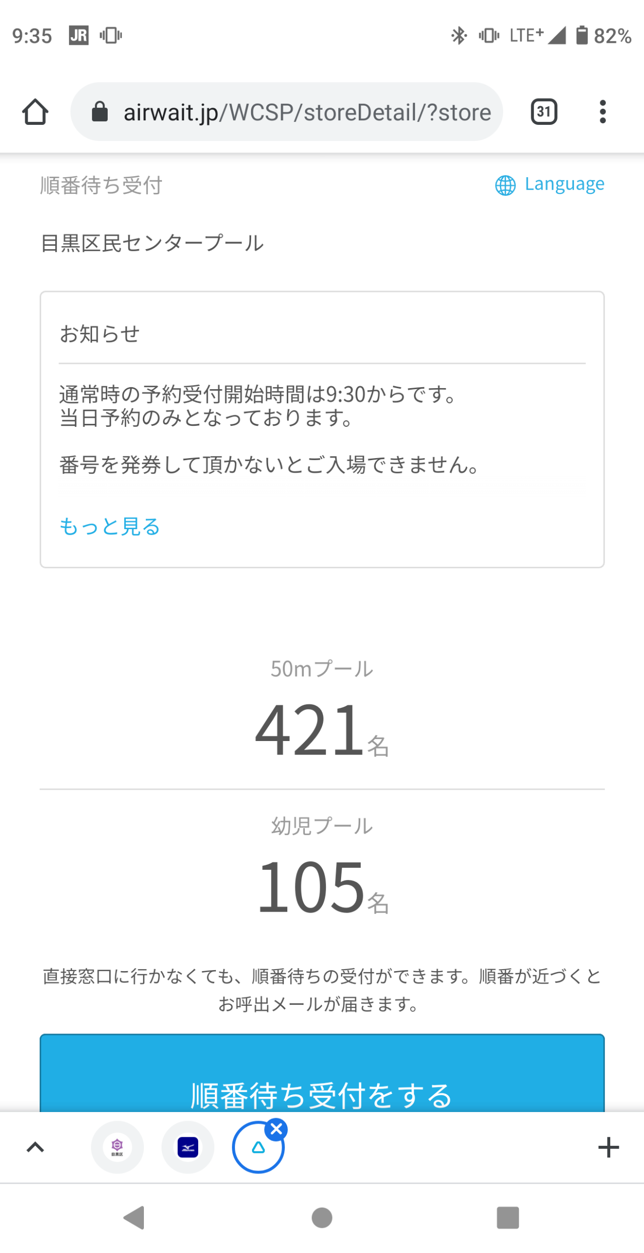 バンド調整を待っている間に予約をいれたら275番で、おそらく250番までがすぐに入れる人だろうから25番待ちというところか。