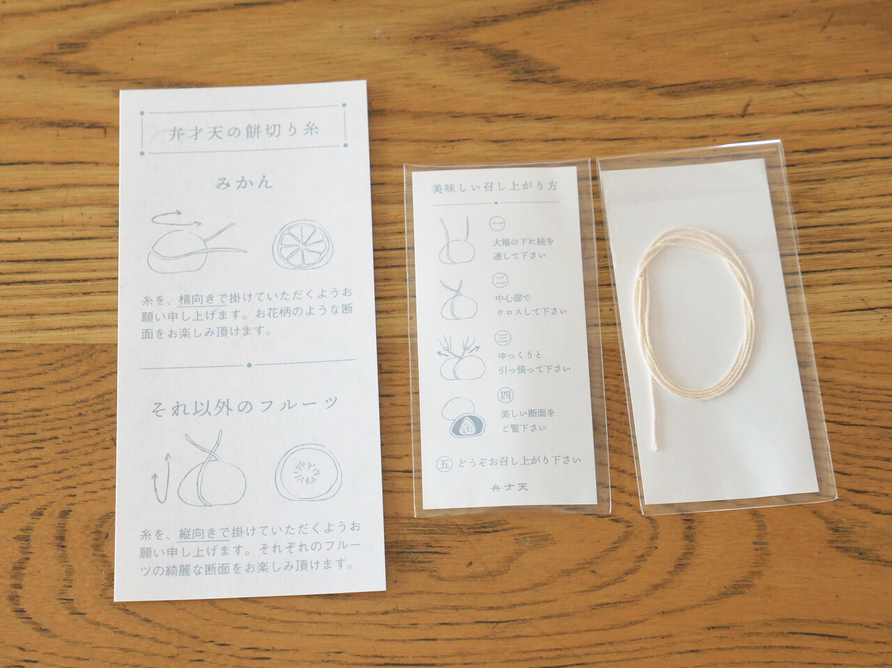 大福を切るための紐がついている。なんだかこの紐に既視感があるなぁと思ったら、小さいときに工場で粘土を切るのに使った紐だ。