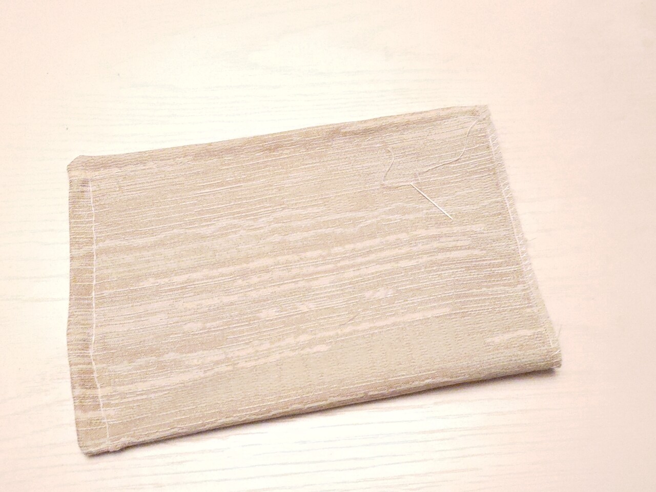 裏返して半返し縫い。手て方向は生地の目がガイドラインになったのでまっすく縫えたが横方向はガッタガタ。