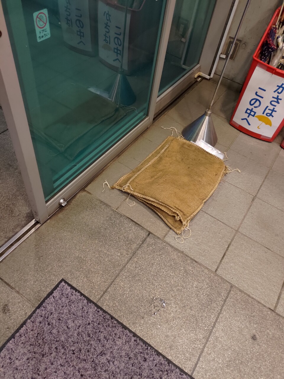 入口には土嚢の準備が。