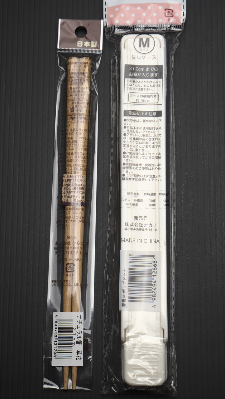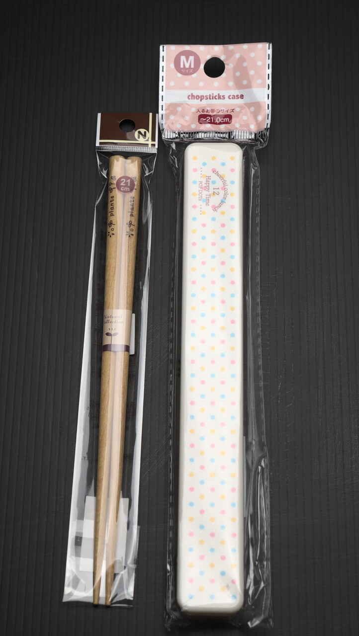 開き扉タイプと今回買ったようなスライドタイプがあったが、持ち歩き途中で開くのもイヤだなということでスライドタイプにした。もうちょっと長い箸が入るケースもあったがむしろ短い方がよかったのでこれに。