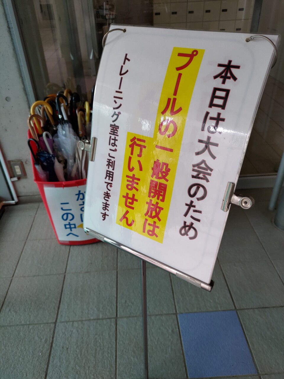 きのう(日曜日)の午前にプールにいったら大会で一般開放なしで泳げなかった。