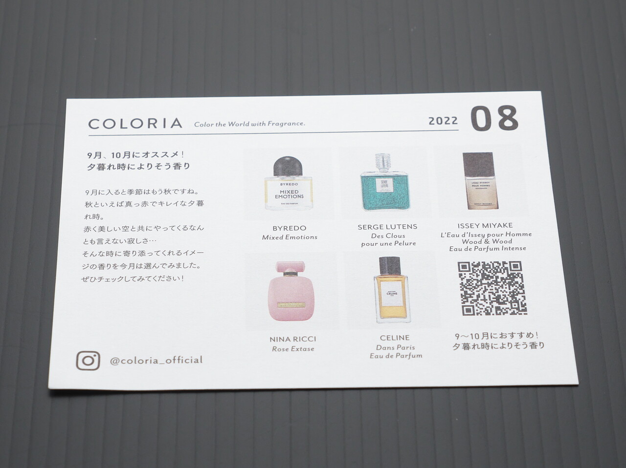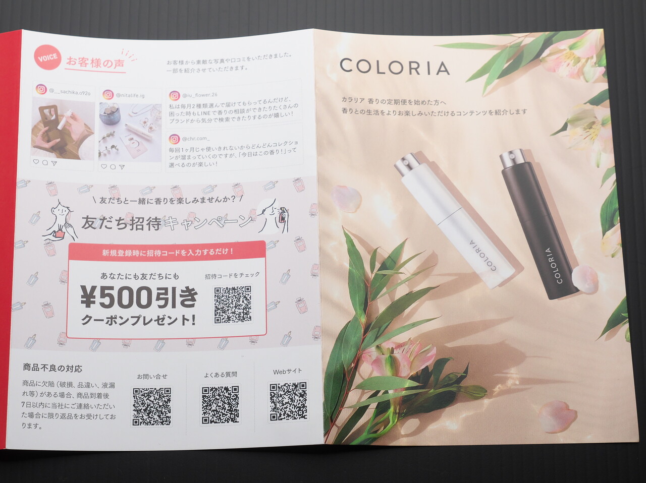 instagramでちょいちょい広告がでてきて気になっていた香水のサブスクの COLORIAの3itemプランにはいってみた。ネットを検索すると初回割引クーポンがあちこちでみつかるので当然利用する。(いちおうわたしの招待コードもはっときます→F-ixo4KXxW)
