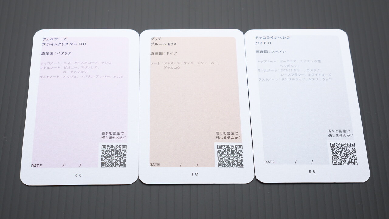 香水はまったくしらないので公式instagramにでていたおすすめのやつからてきとうにチョイスした。基本的にフローラルでフルーティで甘めかんじがいいなぁ。8/8にポチって8/11の配達。プチプチ袋でポストイン。