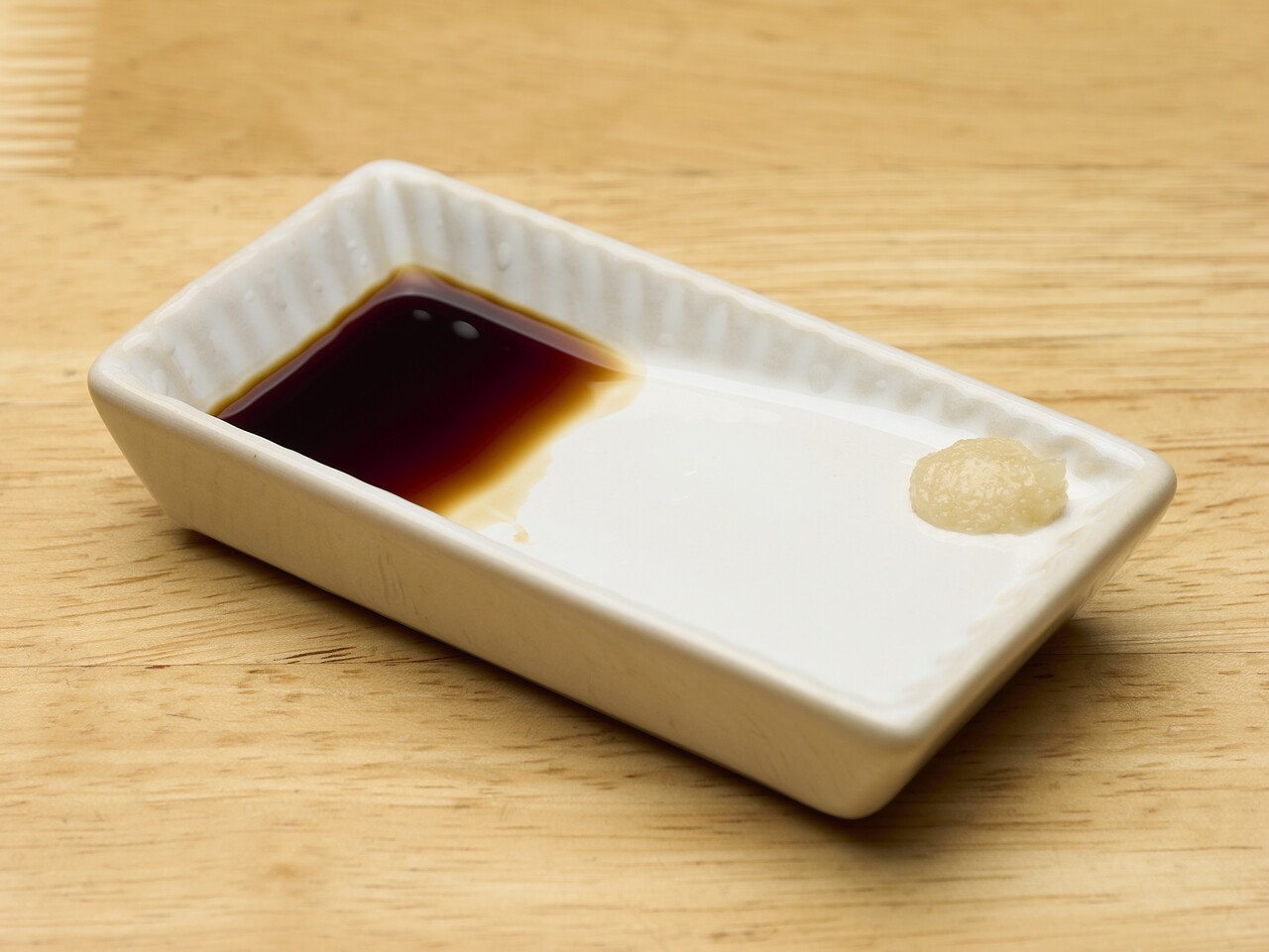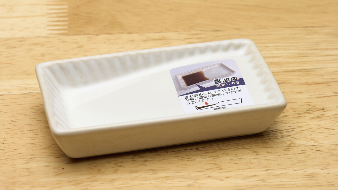 いままでなんとなく買うまでもないなと醤油皿をつかわず、ふつうのお皿に刺身用の醤油を垂らしてたが、なんか買う気になった。傾いているってのが心に響いた。