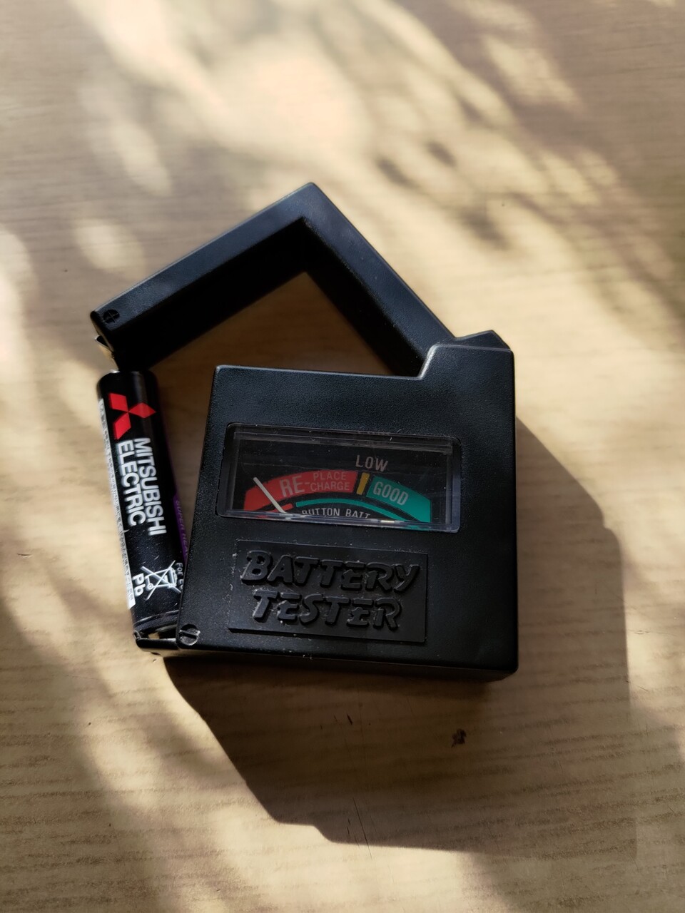 たかが電池チェッカーなのに電池内蔵なのは驚き。しかも内蔵電池は交換できないってさ。