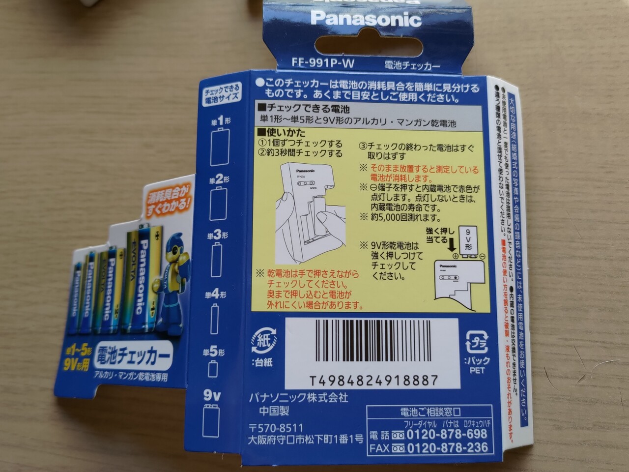 実家のエアコンのリモコンが液晶表示はでてるんだけどボタンを押しても本体が反応しないので電池があやしいってことで親に相談したら電池チェッカーがあるので調べて空になってたらスペアの電池があるから交換せよということで、物置にいくとまさかのパナソニック製の電池チェッカーだった。