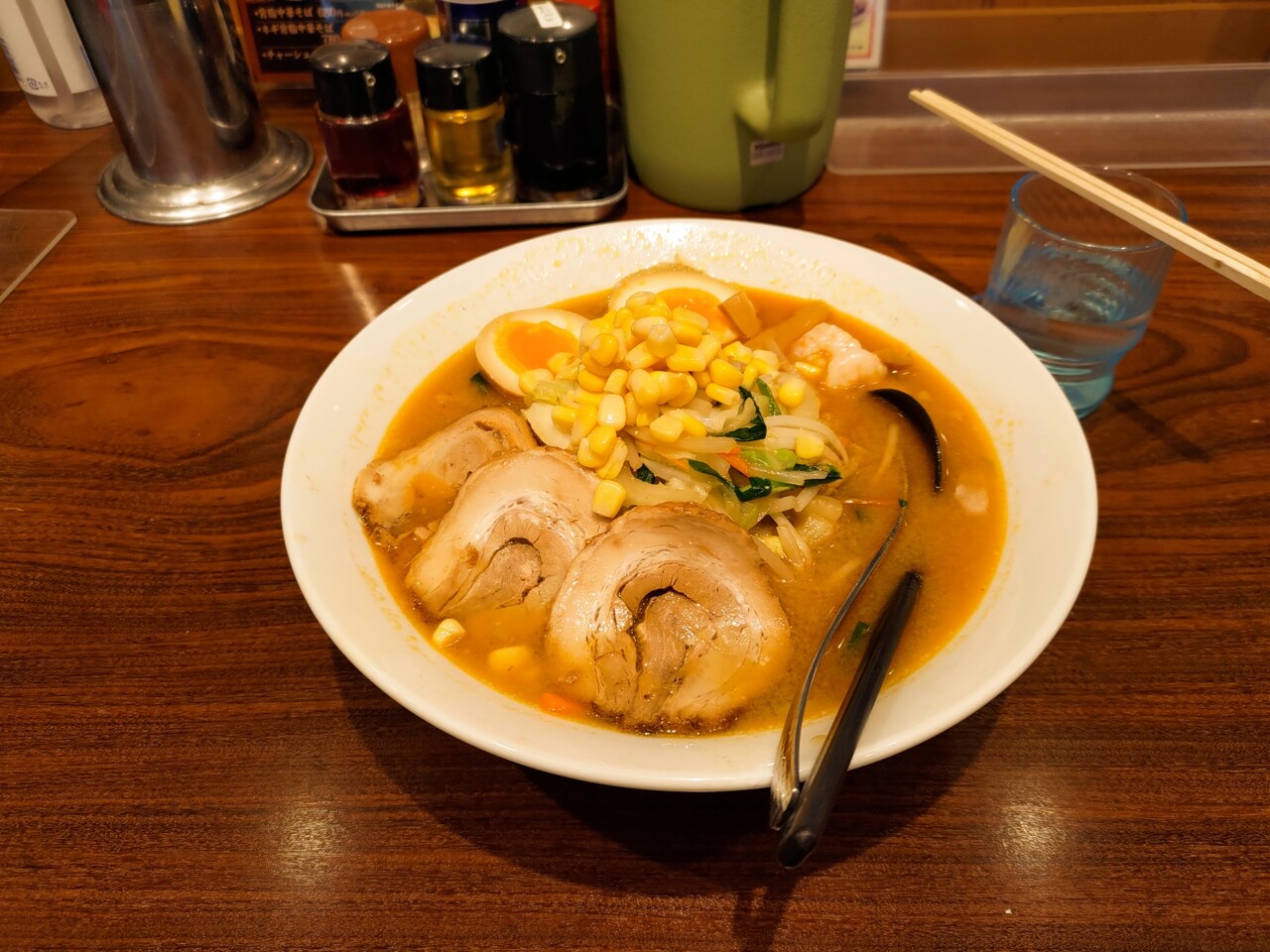帰りに、最後にいったのはいつだったかたぶん子供のころにいったのが最後だとおもうが、灯台らーめんにいった。ちょうど時間がわるくて混んでるときに行列にならんでしまって30分ほど待った。