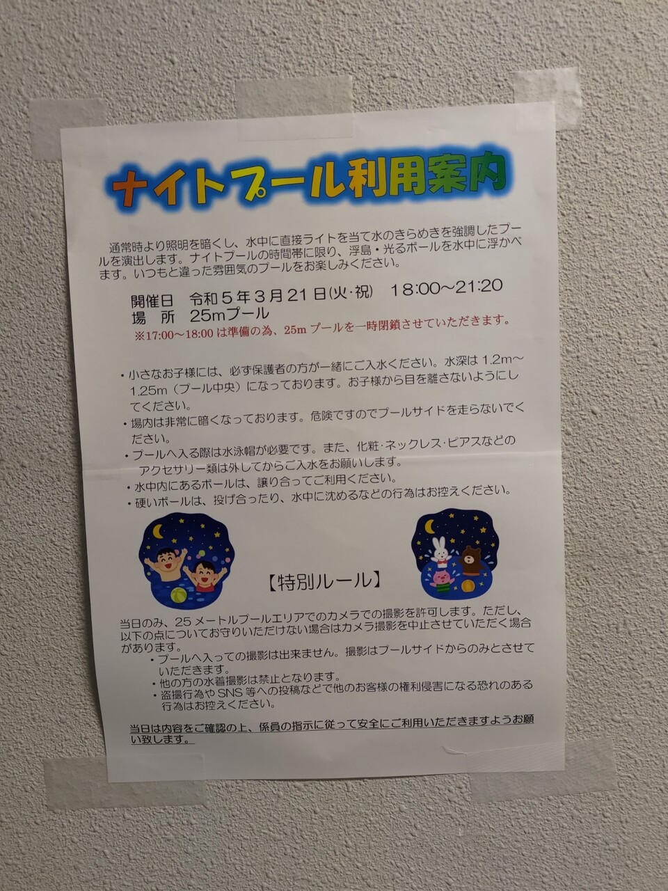 今日のグリーンプールは春分の日で無料開放。夜はナイトプールだったのでその時間にいってきた。