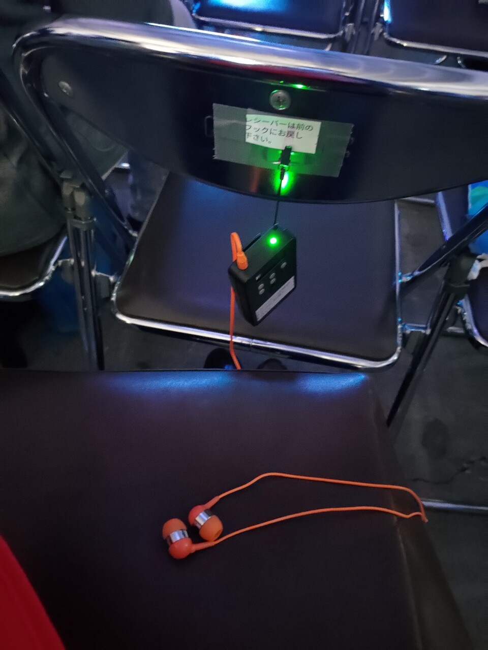 さいごにサイレントセミナーをきいた。ホールにずらっとスクリーンがならんで音声はワイヤレスレシーバーで聞くというスタイル。ここではじめて受付でもらったイヤホンをつかう。音が小さいなぁとおもってボリュームをMAXにしても小さくて接触不良かとおもってグイっとプラグを押し込んだらいきなり爆音になった。どうやらグラウンドが浮いてたっぽい。f*ck